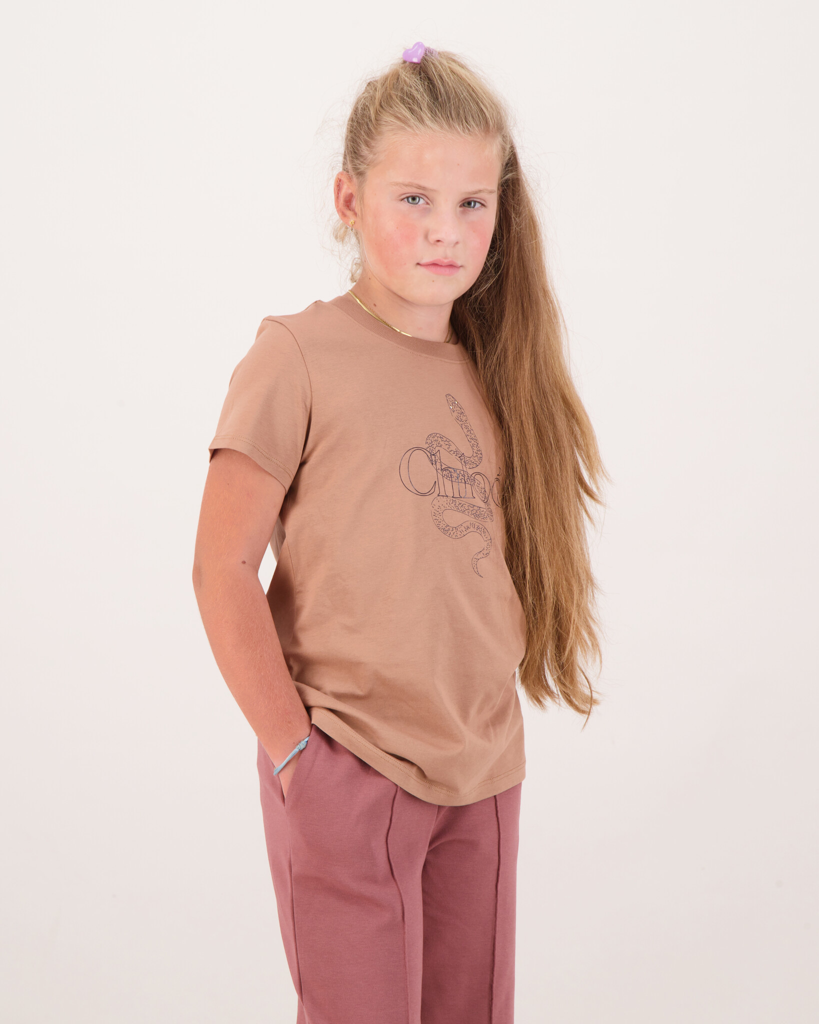 Das Model ist 1,35 m groß und trägt Größe 10.