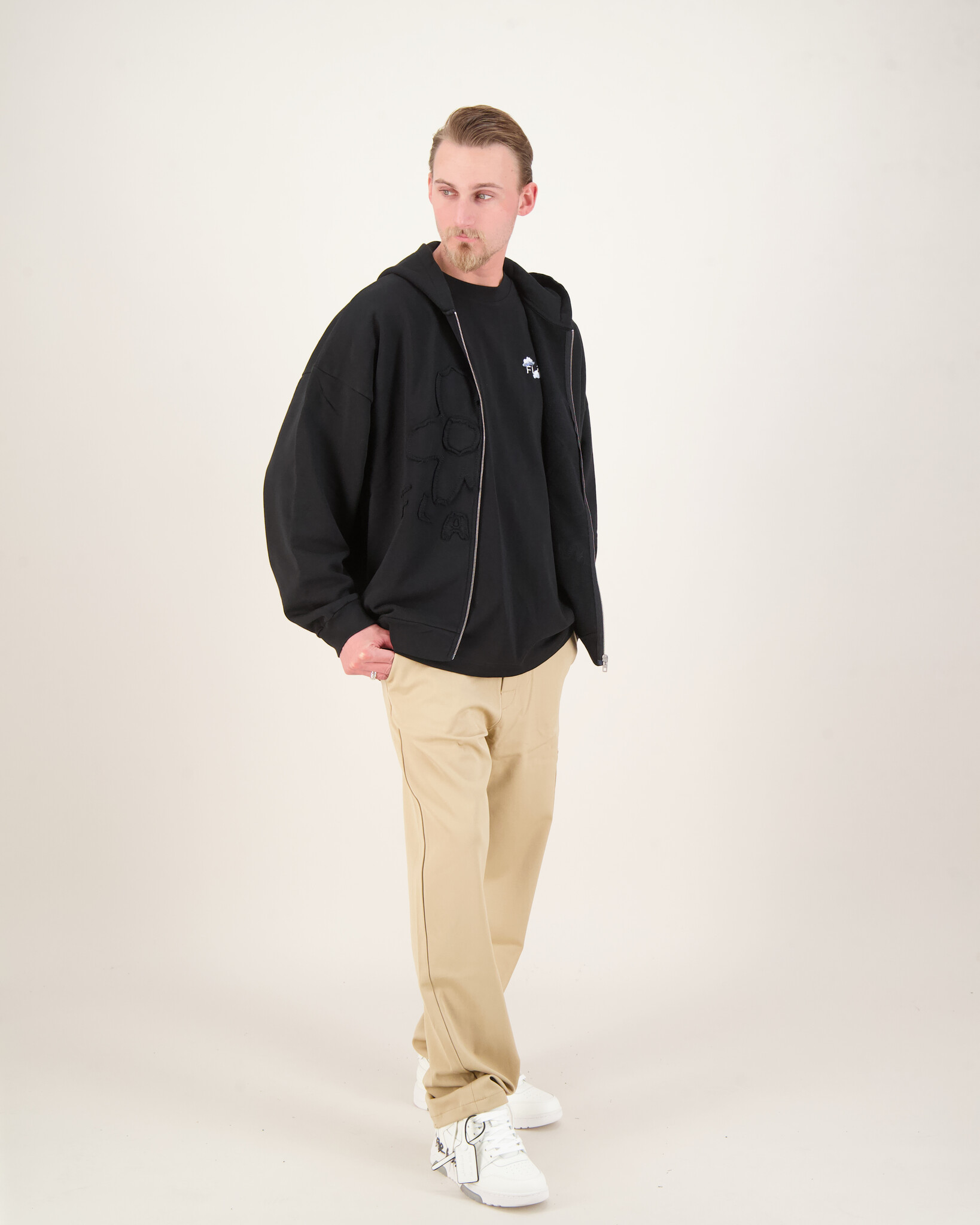 Das Model ist 1,88m & 79kg groß und trägt Größe L.