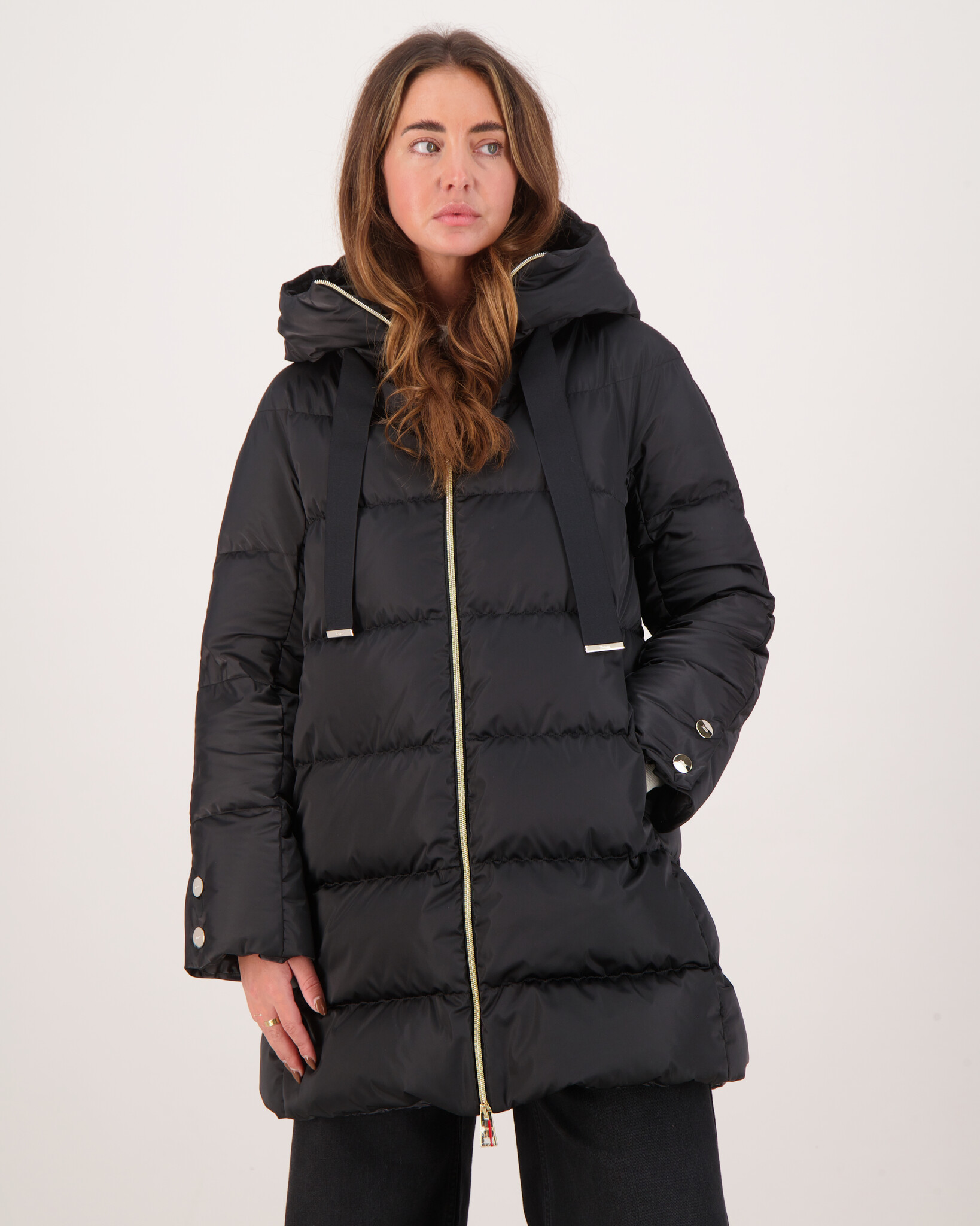 Material: Hauptstoff: 100 % Polyester, Futter: 100 % Polyamid/Nylon, Besatz: 55 % Baumwolle, 45 % Polyester, Füllung (Federn): 80 % Daunen, 20 % Federn