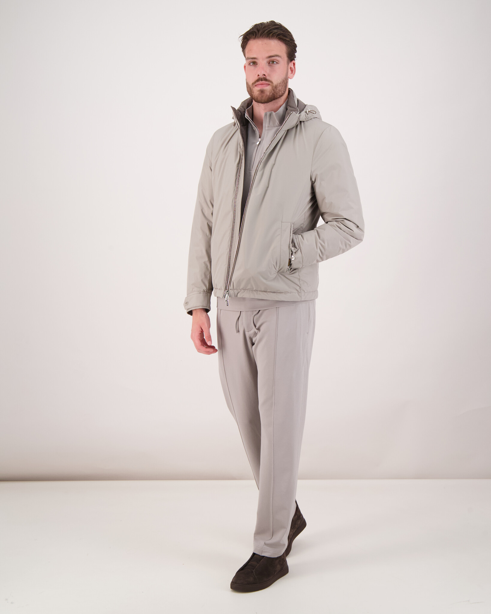 Das Model ist 1,89 m groß, wiegt 81 kg und trägt Größe 50.