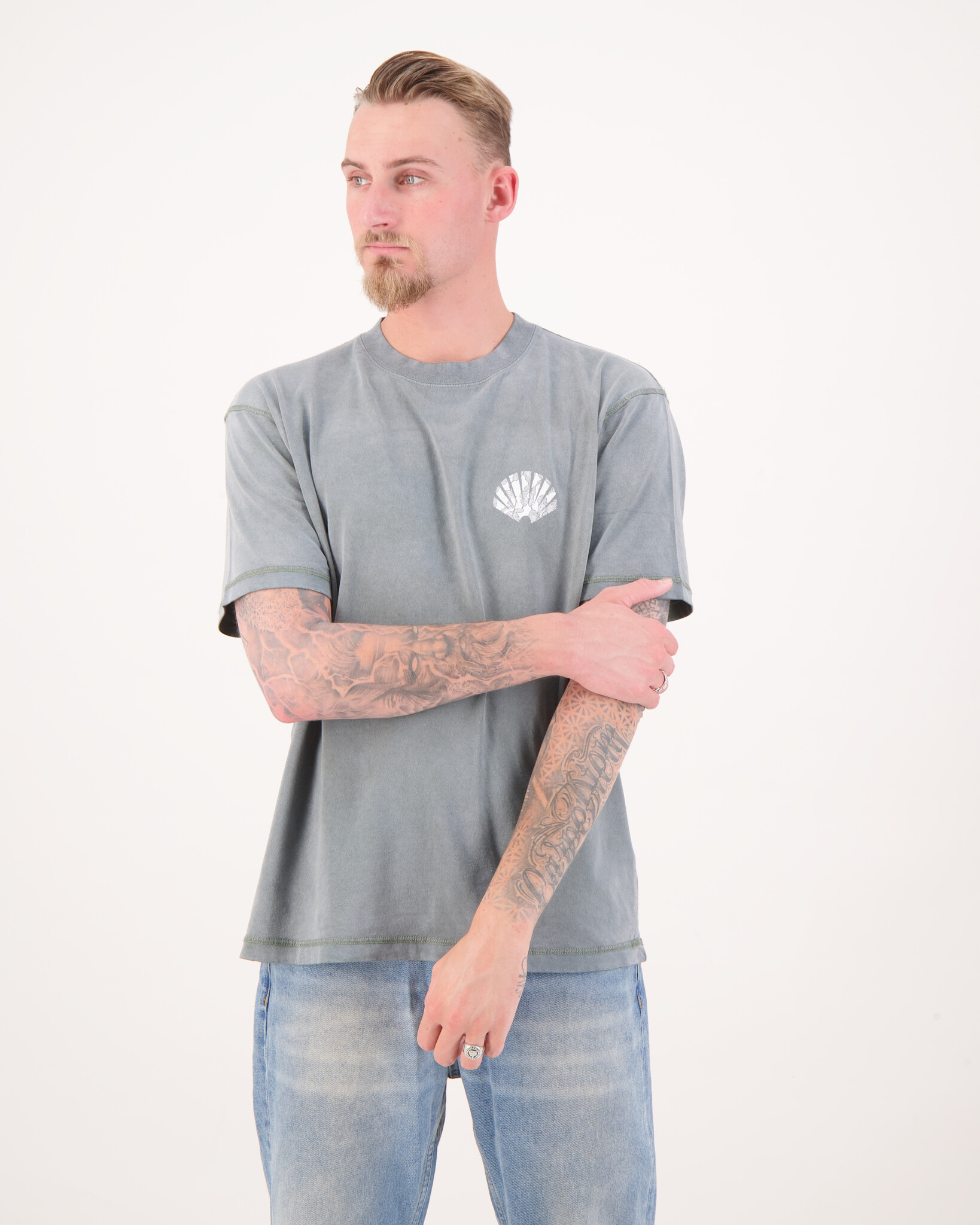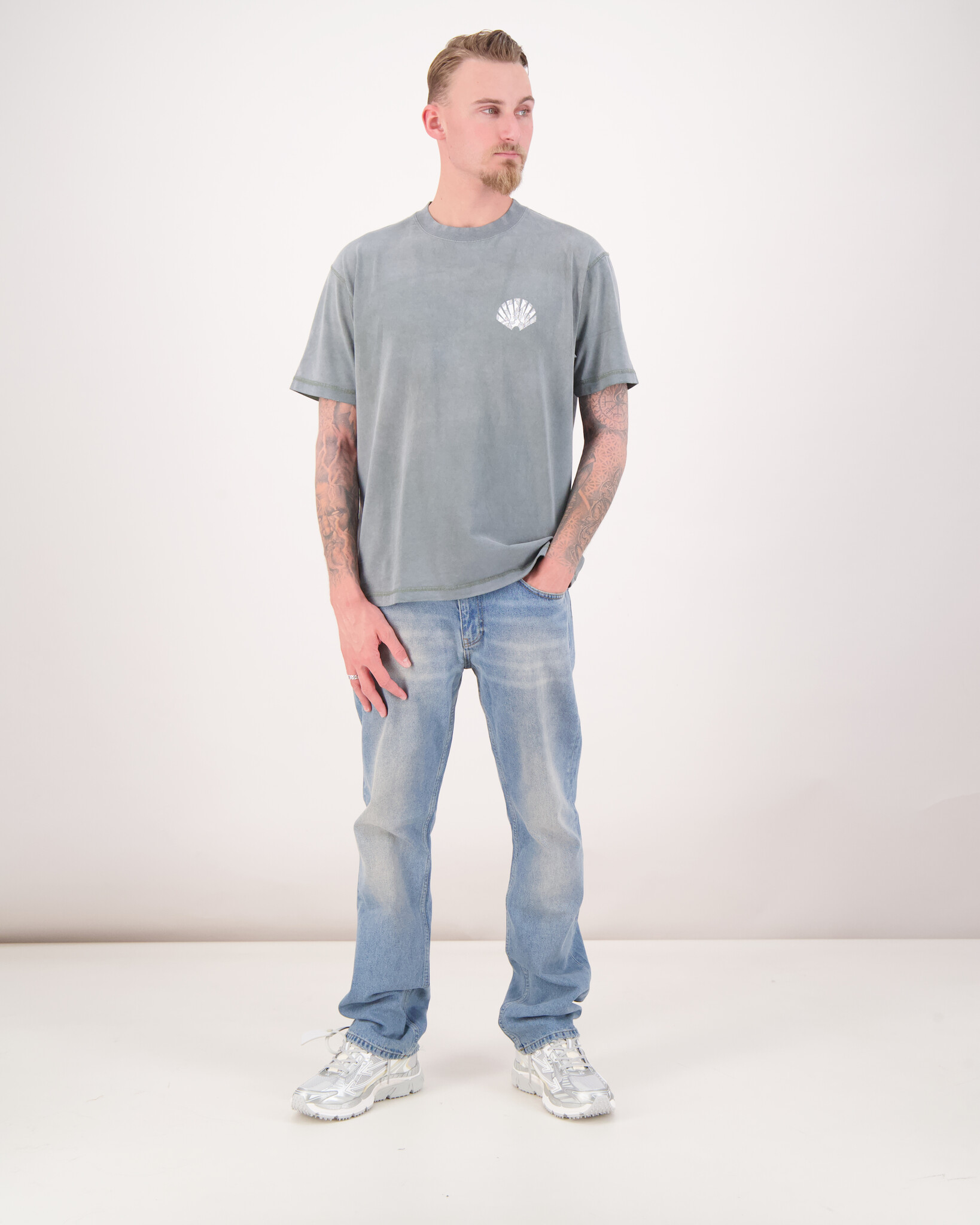 Das Model ist 1.90m & 70kg groß und trägt Größe L.
