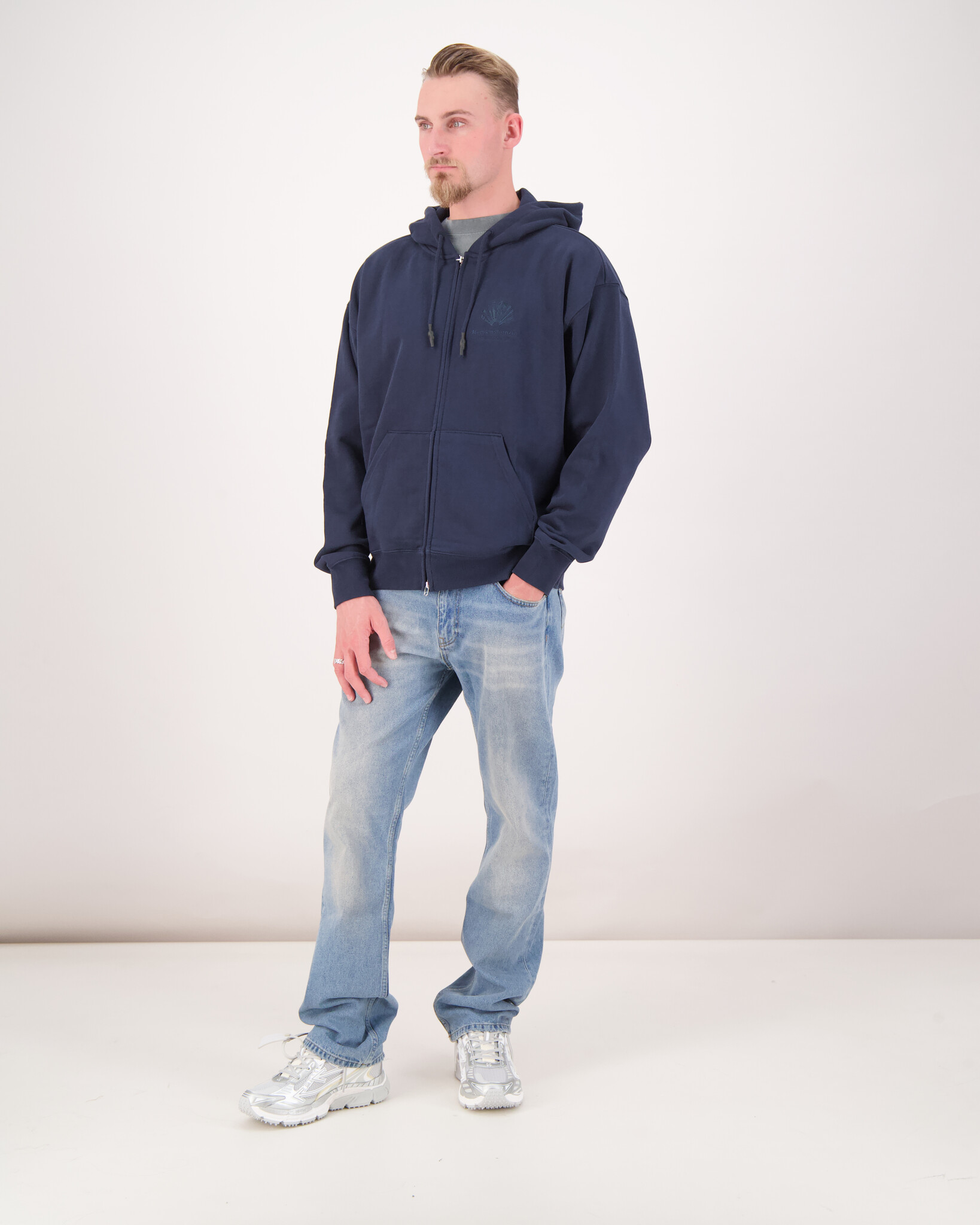Das Model ist 1.90m & 70kg groß und trägt Größe L