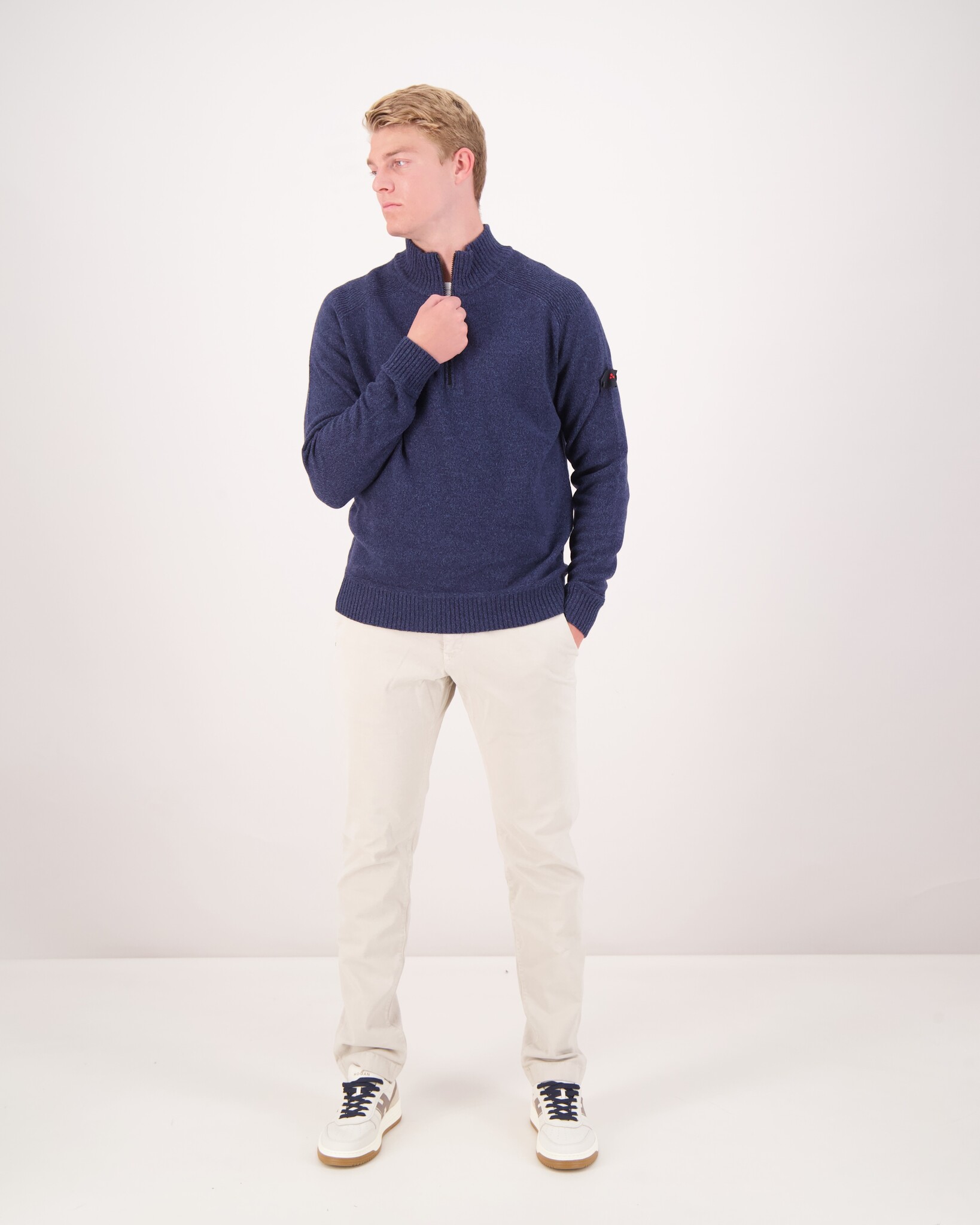 Das Model ist 1.86m, wiegt 82kg und trägt Größe L.