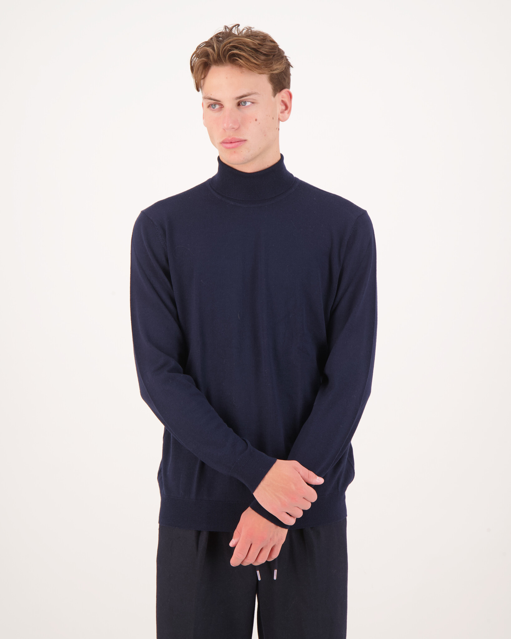 Das Model ist 1,90 m groß, wiegt 79 kg und trägt Größe L.