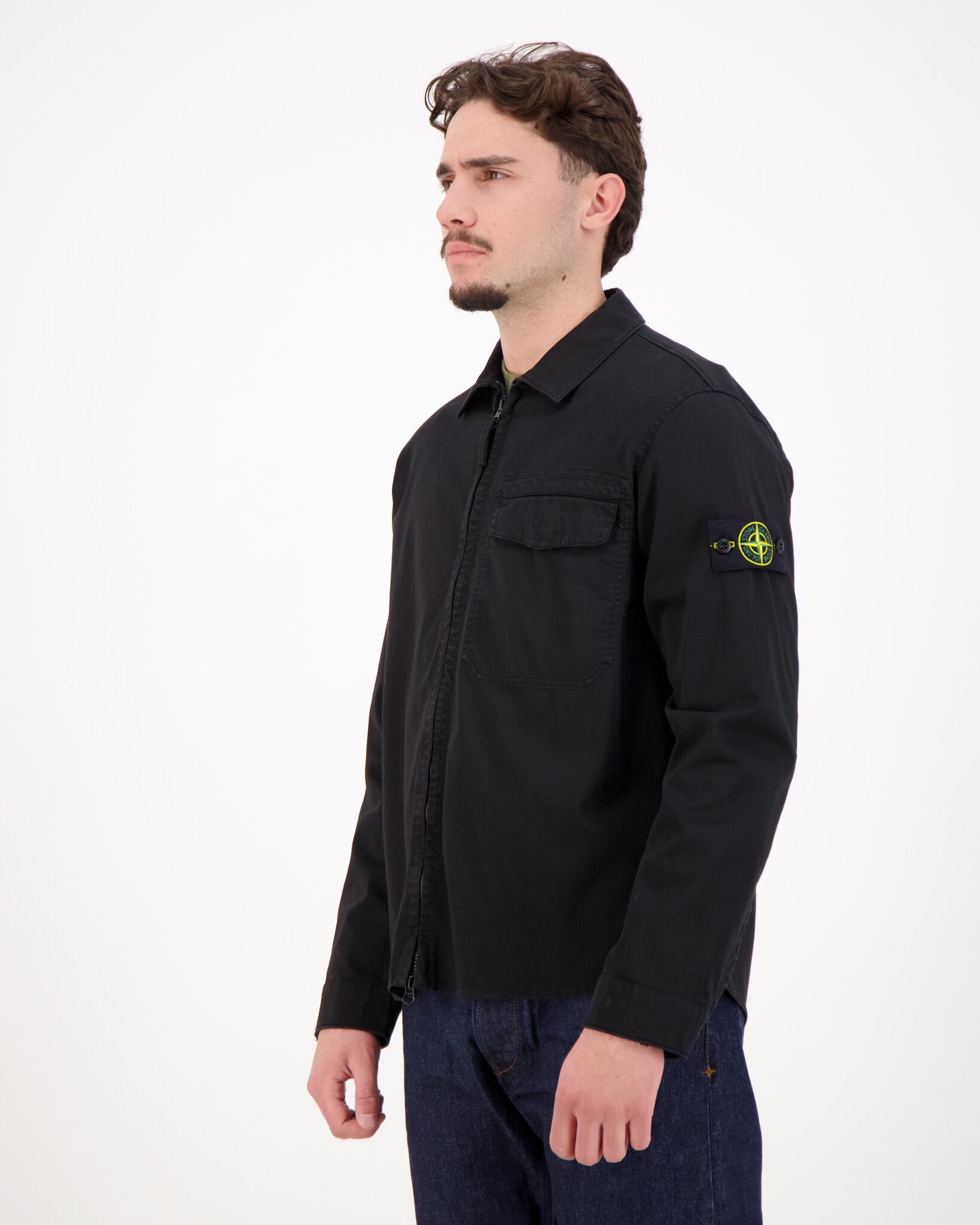Das Model ist 1,88 m groß, wiegt 79 kg und trägt Größe L.