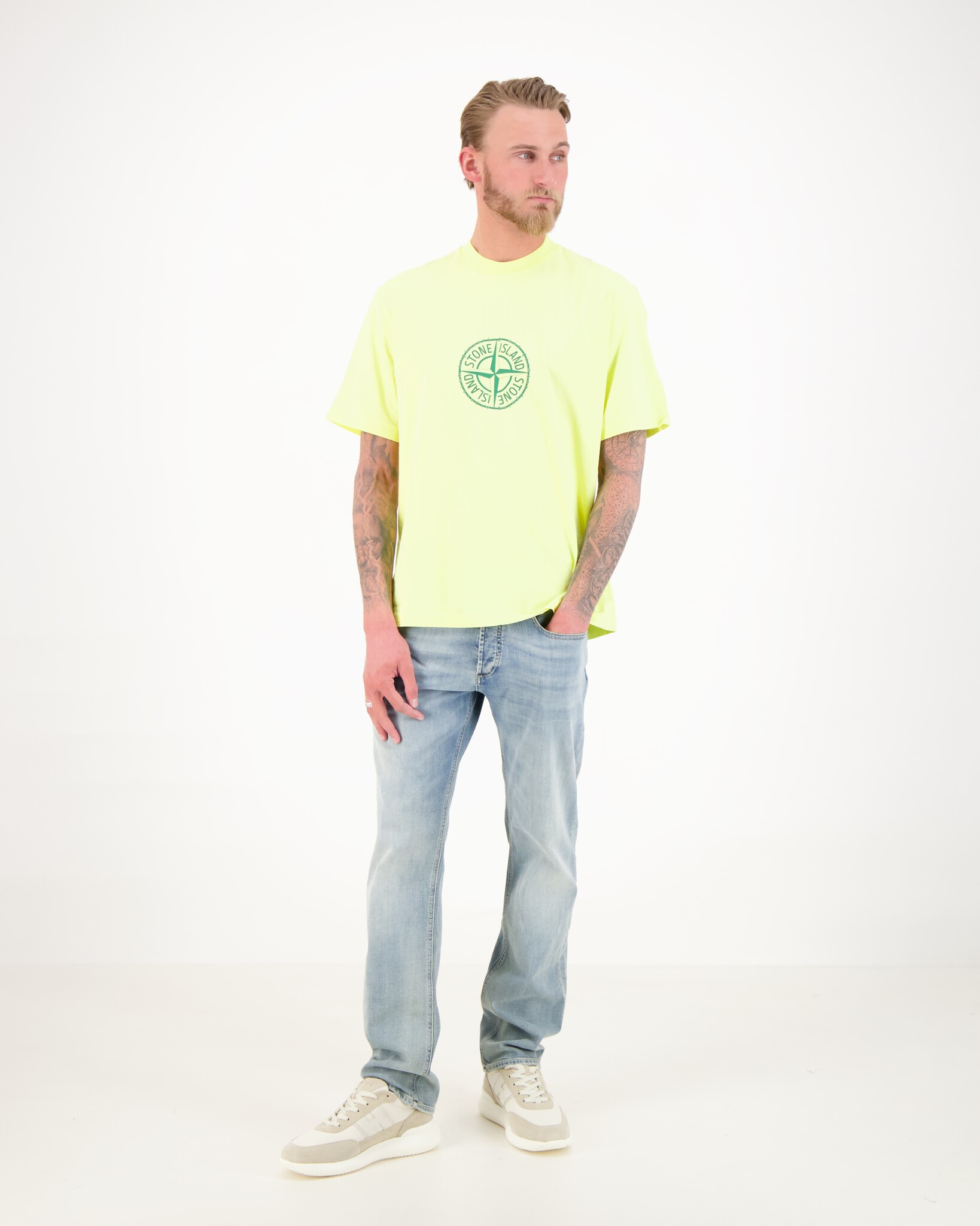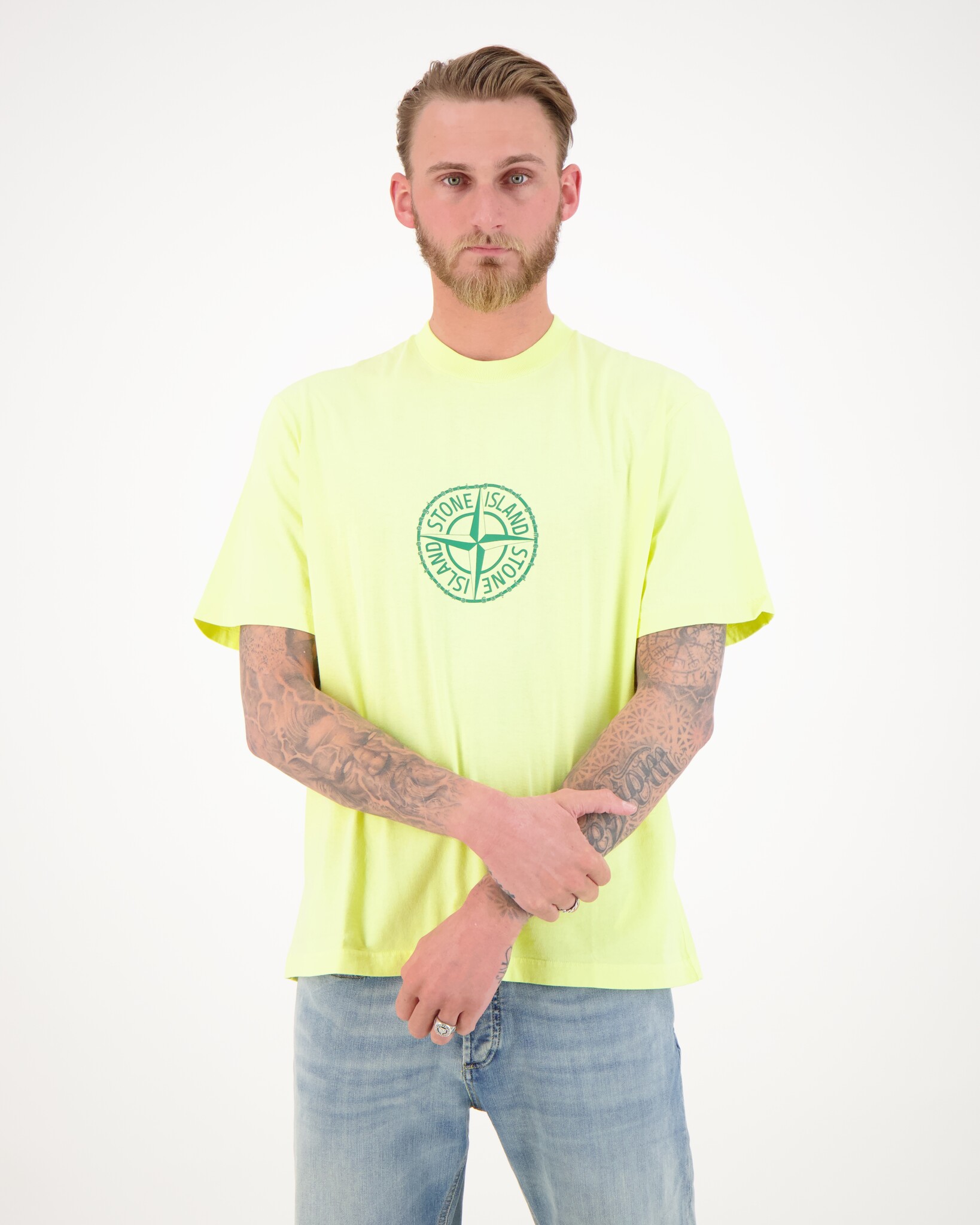 Das Model ist 1,90 m groß, wiegt 79 kg und trägt Größe L.