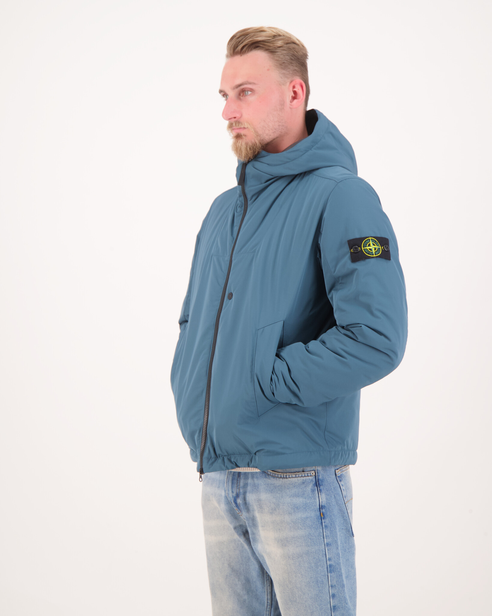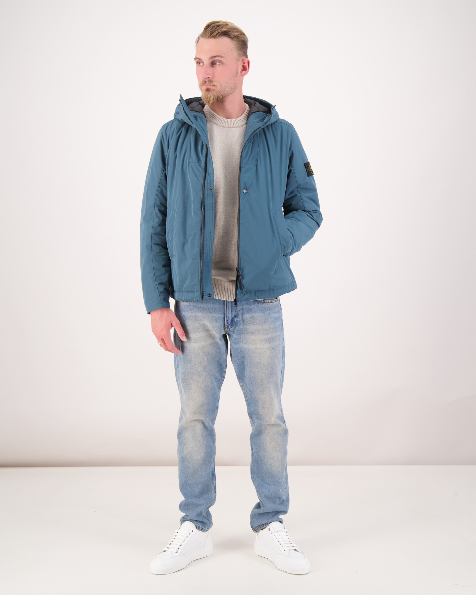 Das Model ist 1,88 m groß, wiegt 79 kg und trägt Größe L.
