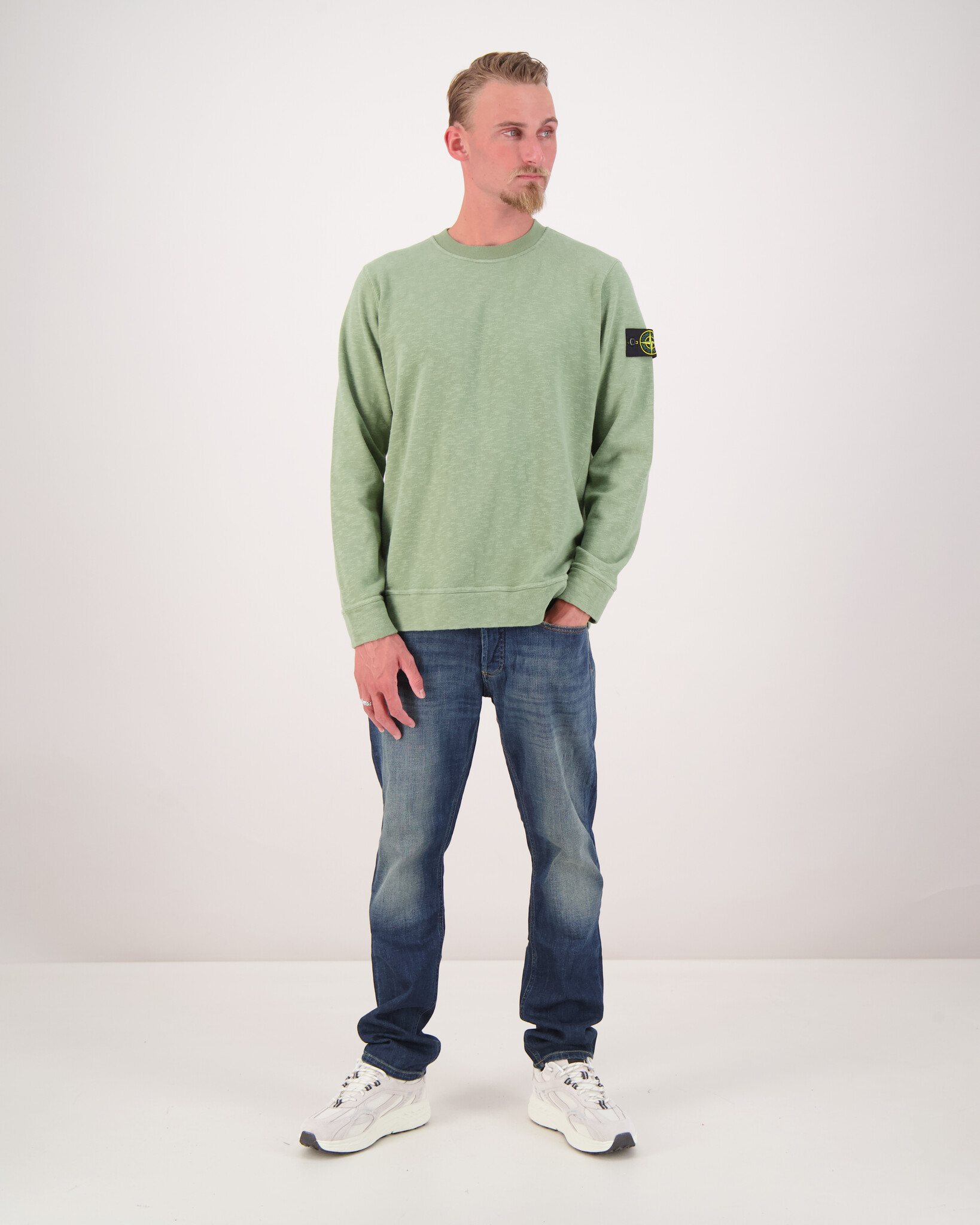 Das Model ist 1,88 cm groß, wiegt 79 kg und trägt Größe L.