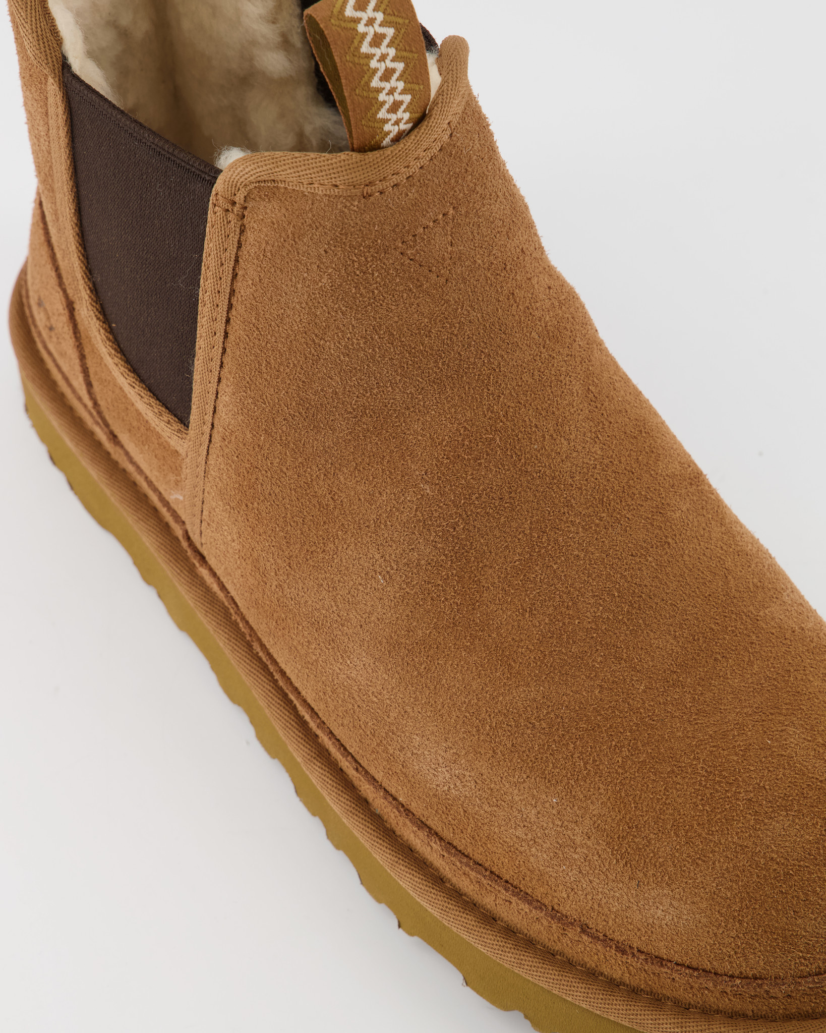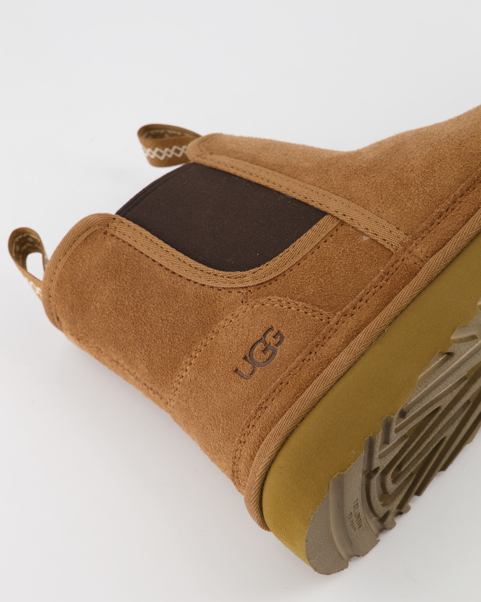 Chestnut M Neumel Chelsea von UGG. Dieses ikonische Modell ist außen aus Wildleder gefertigt und mit einem schmutz- und wasserabweisenden Mittel vorbehandelt. Das Futter besteht aus dem bekannten Schaffell und sorgt für stets warme Füße. Der beidseitige Gummizug erleichtert das An- und Ausziehen.
