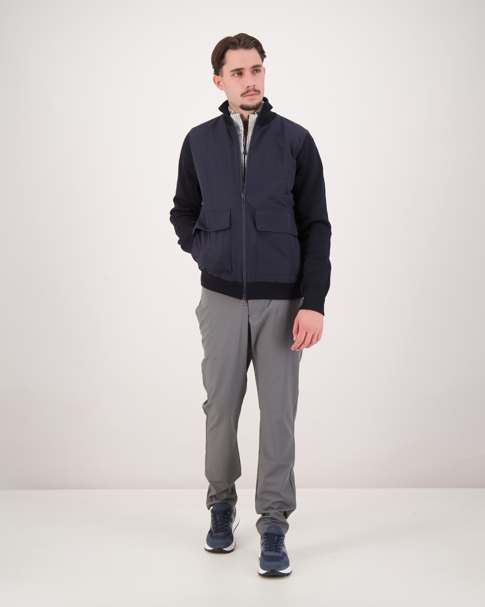 Das Model ist 186 cm groß, wiegt 73 kg und trägt Größe L.