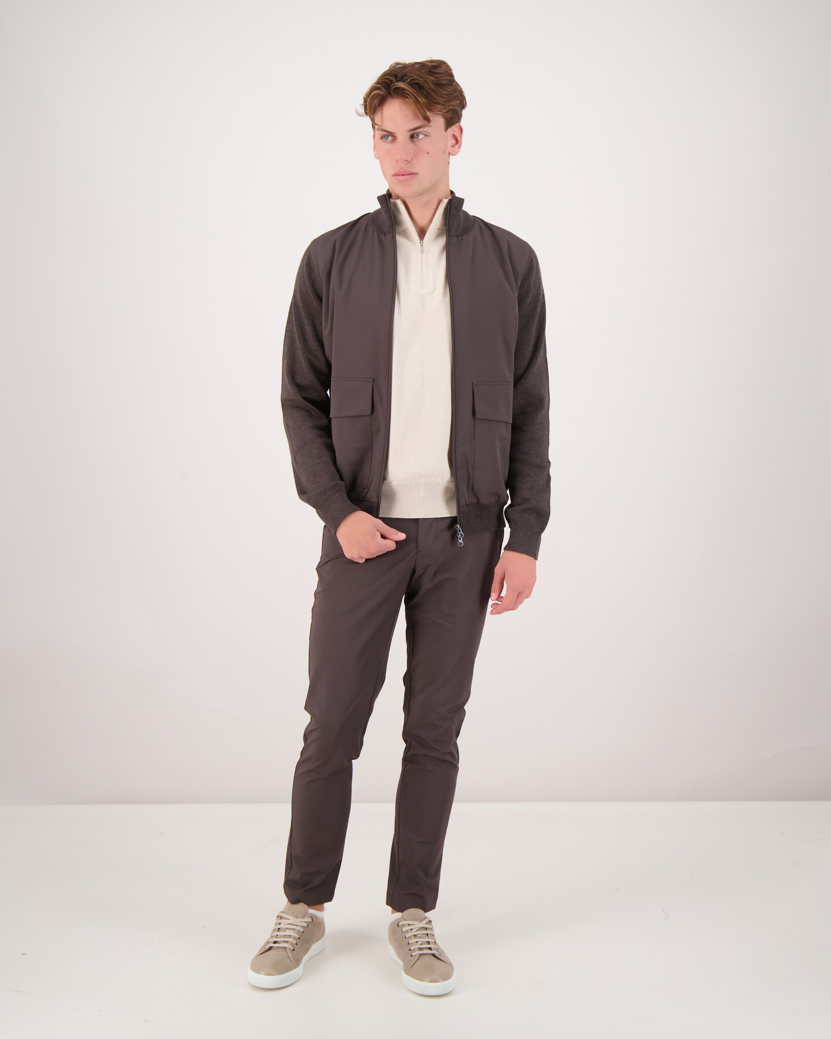 Zweiter Stoff: 83 % Merinowolle, 17 % Elastan