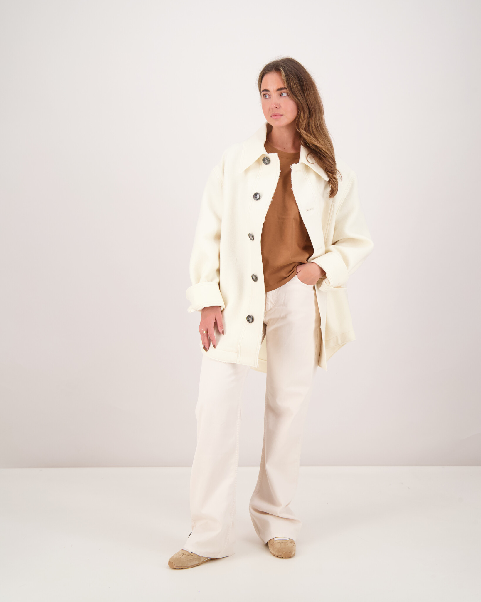 Das Model ist 1,70 m groß, wiegt 60kg und trägt Größe L.
