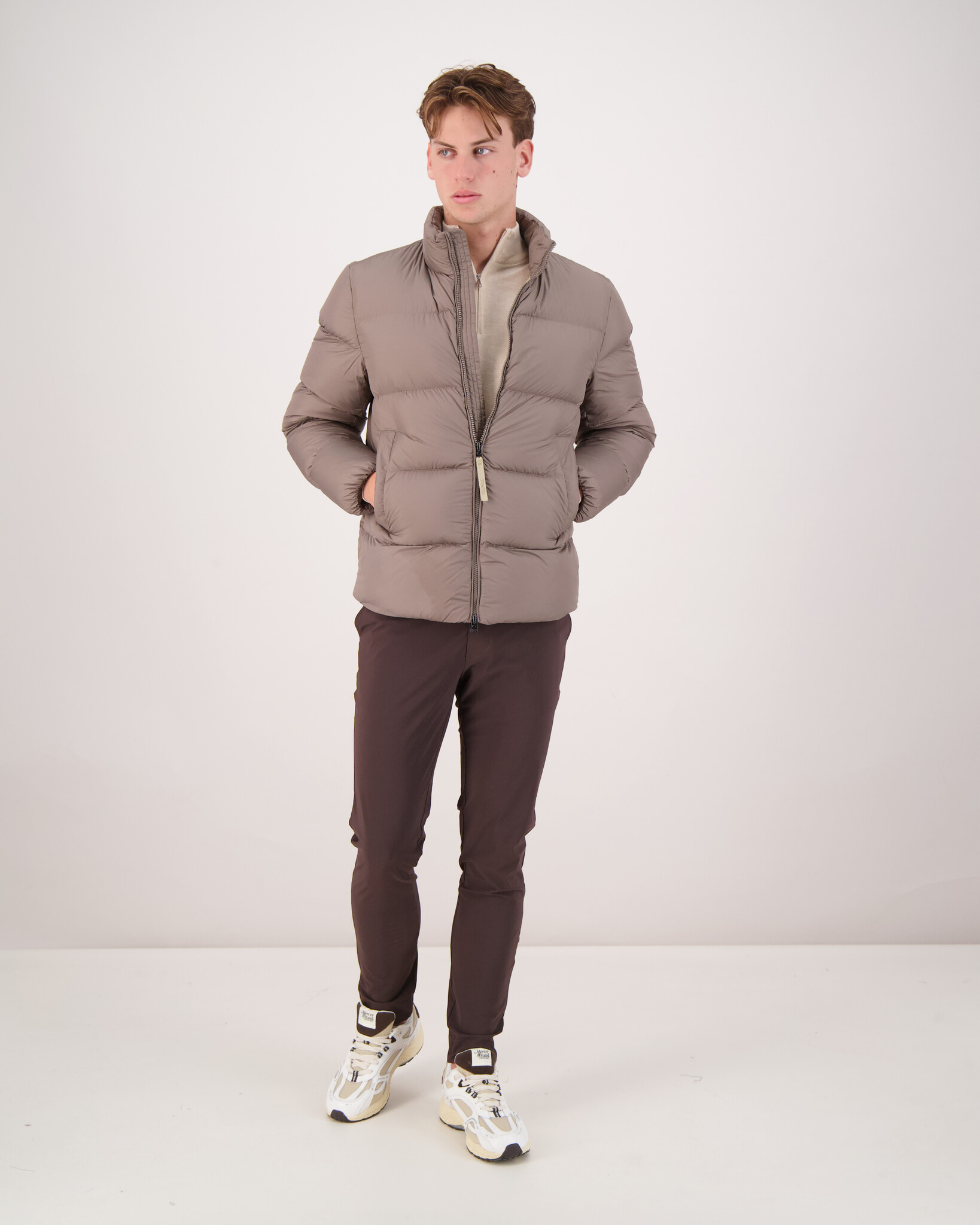 Das Model ist 1,90 m groß, wiegt 79 kg und trägt Größe L.