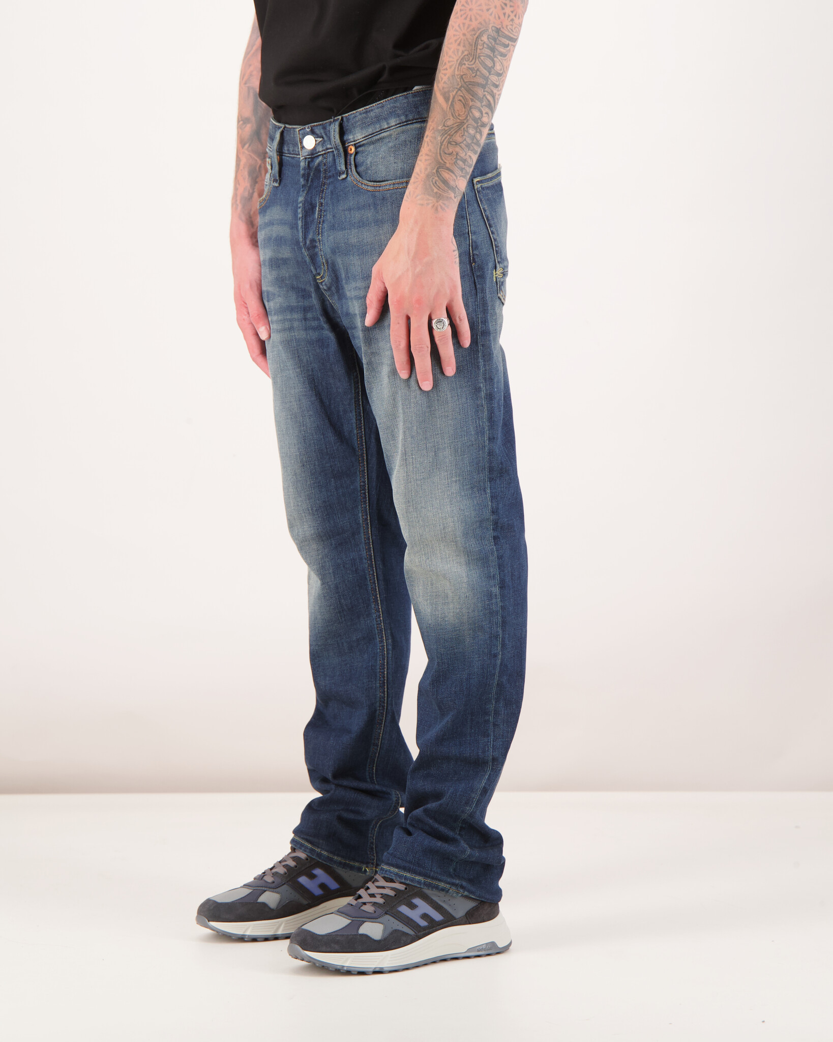 Model is 1.90m tall and is wearing size W33.