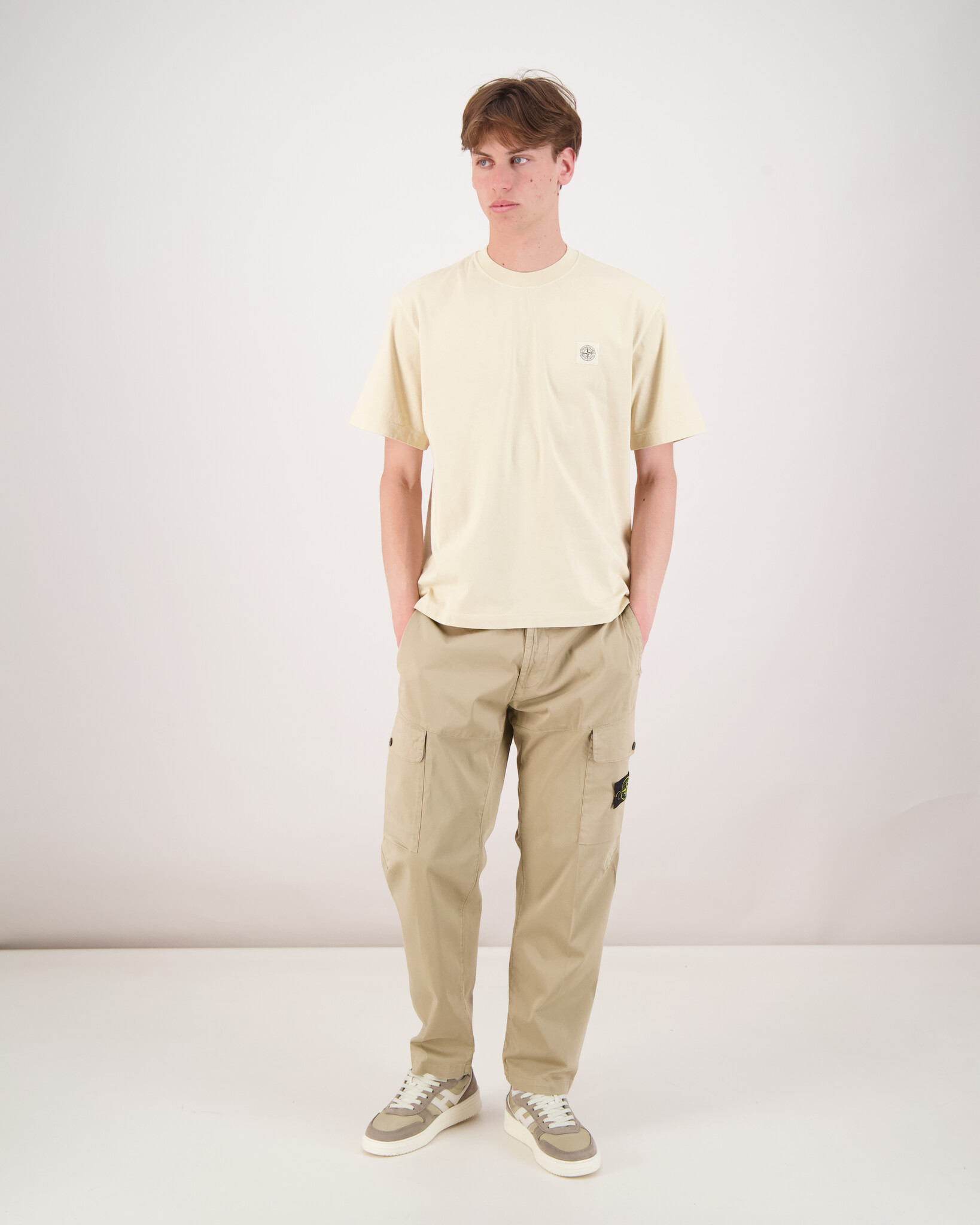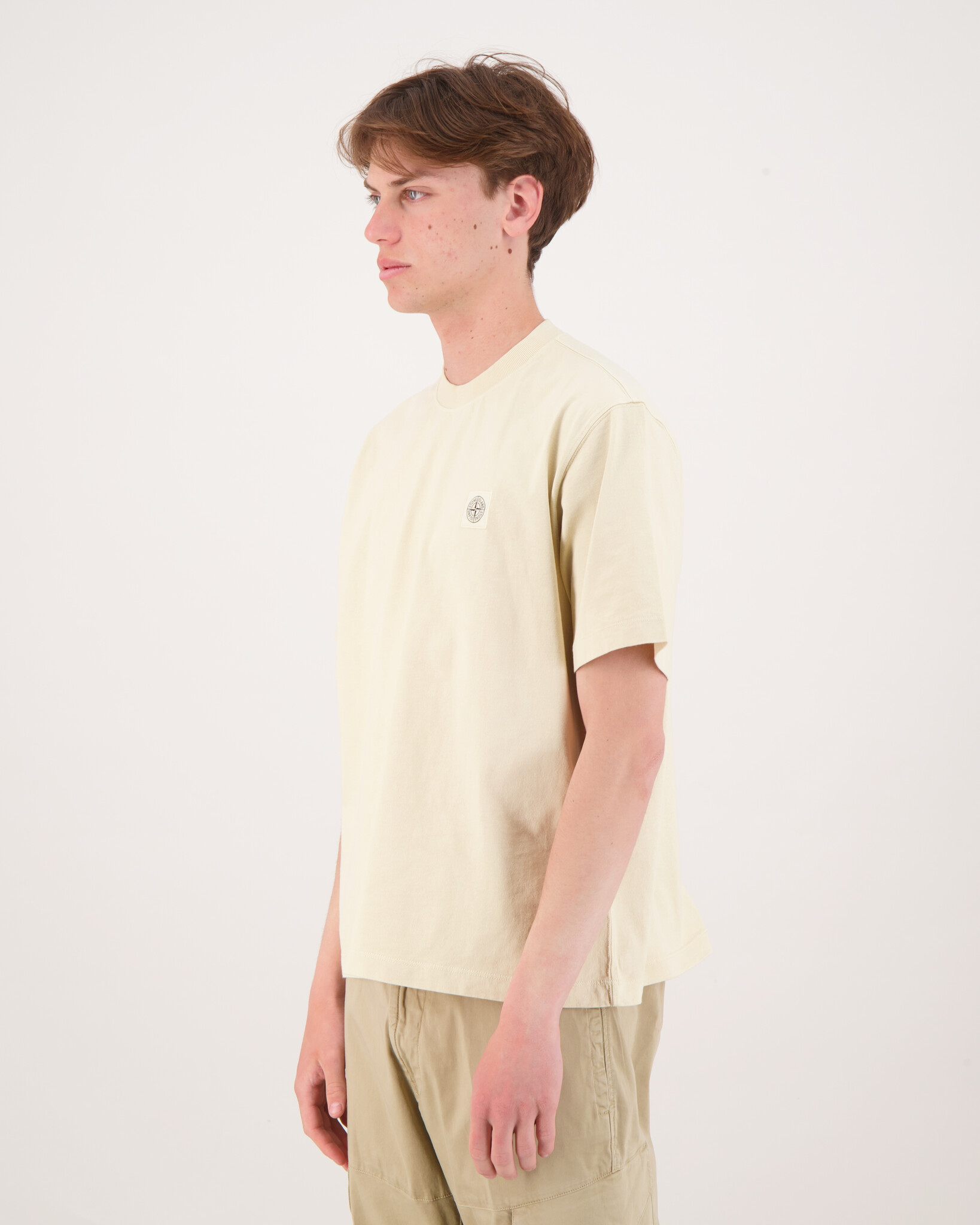 Avena 2100034 Logo Patch Basic T-Shirt van het merk Stone Island. Het t-shirt is van gewassen kwaliteit, heeft een ronde hals, korte mouwen en het bekende Stone Island-logo op de borst.