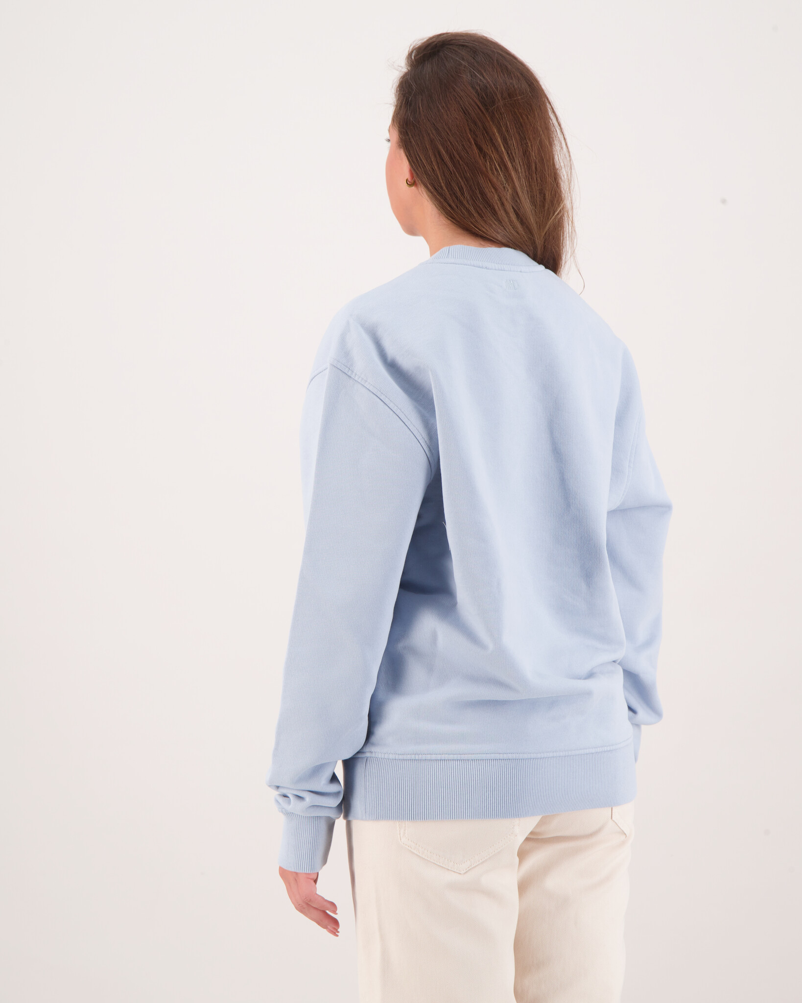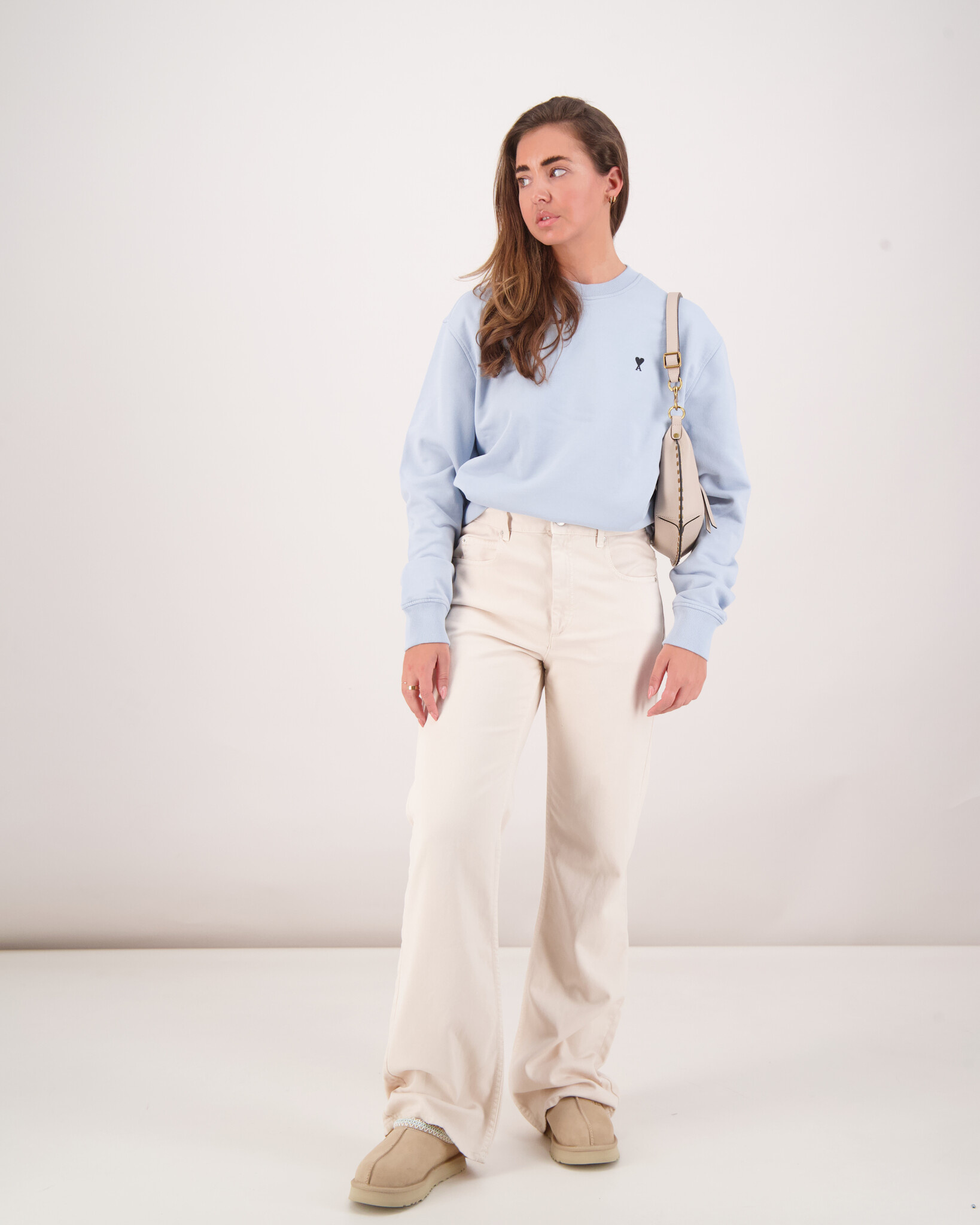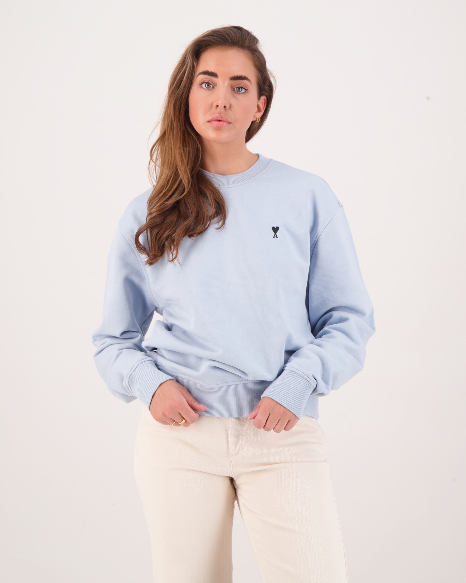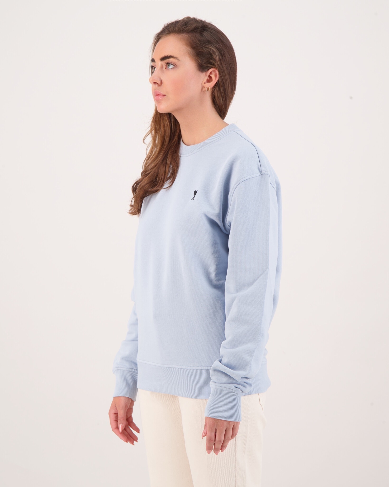 Deze lichtblauwe Ami de Cœur-sweater van biologisch katoen combineert comfort en stijl moeiteloos. Met het iconische hartlogo op de borst draag je een stukje AMI – subtiel, tijdloos, oprecht.
