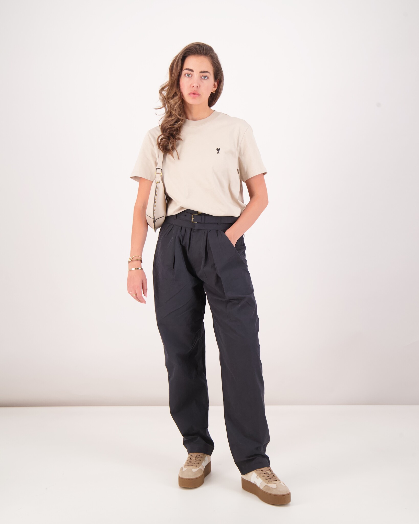Creme AMI De Coeur Black logo T-Shirt van het merk Ami Paris. Het T-Shirt met korte mouwen is gemaakt van 100% Katoen. Het T-Shirt heeft het bekende AMI logo op de borst, het logo is zwart.