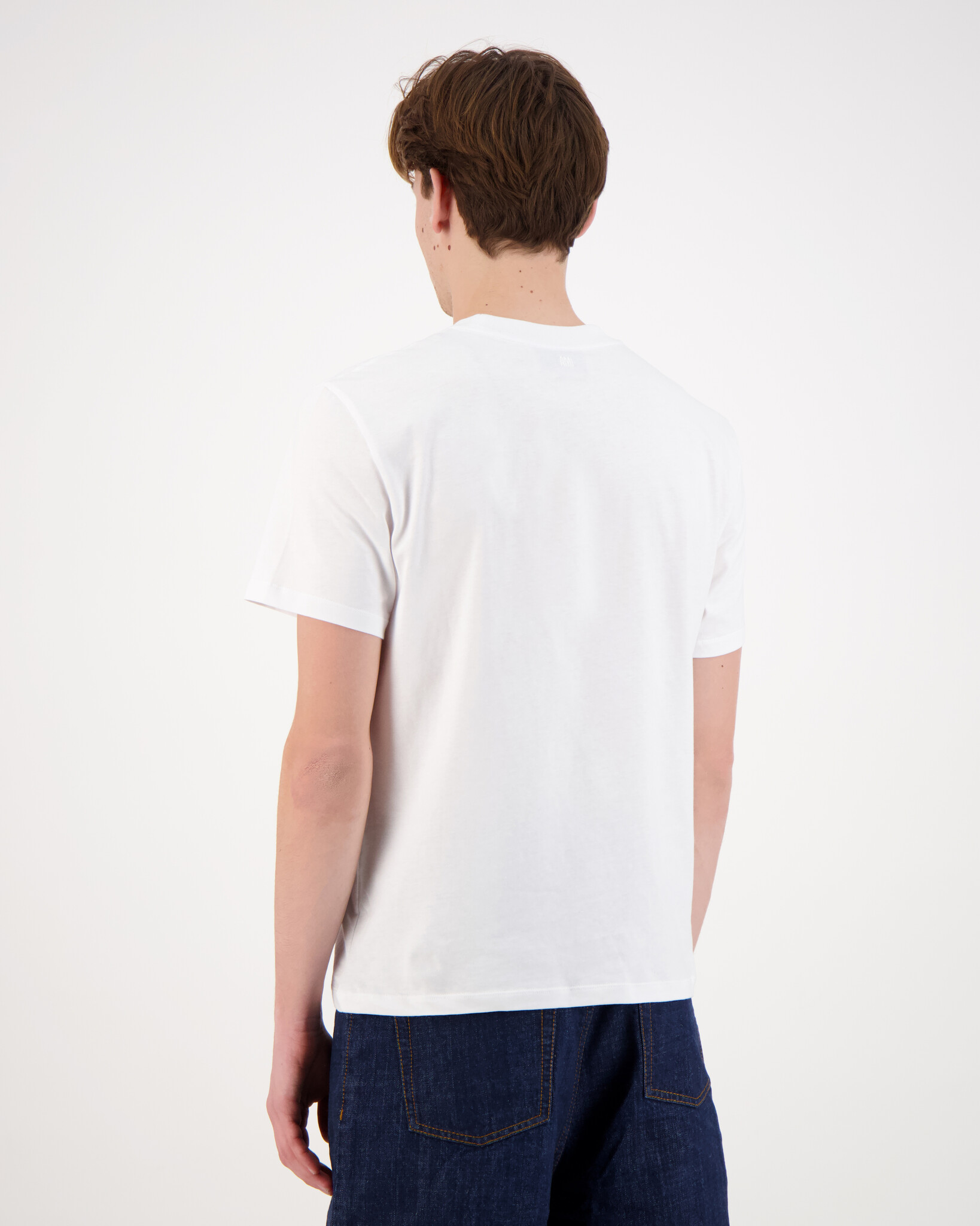 Witte AMI De Coeur T-Shirt van het merk Ami Paris. Het T-Shirt met korte mouwen is gemaakt van 100% Katoen. Het T-Shirt heeft het bekende rode AMI logo op de borst.