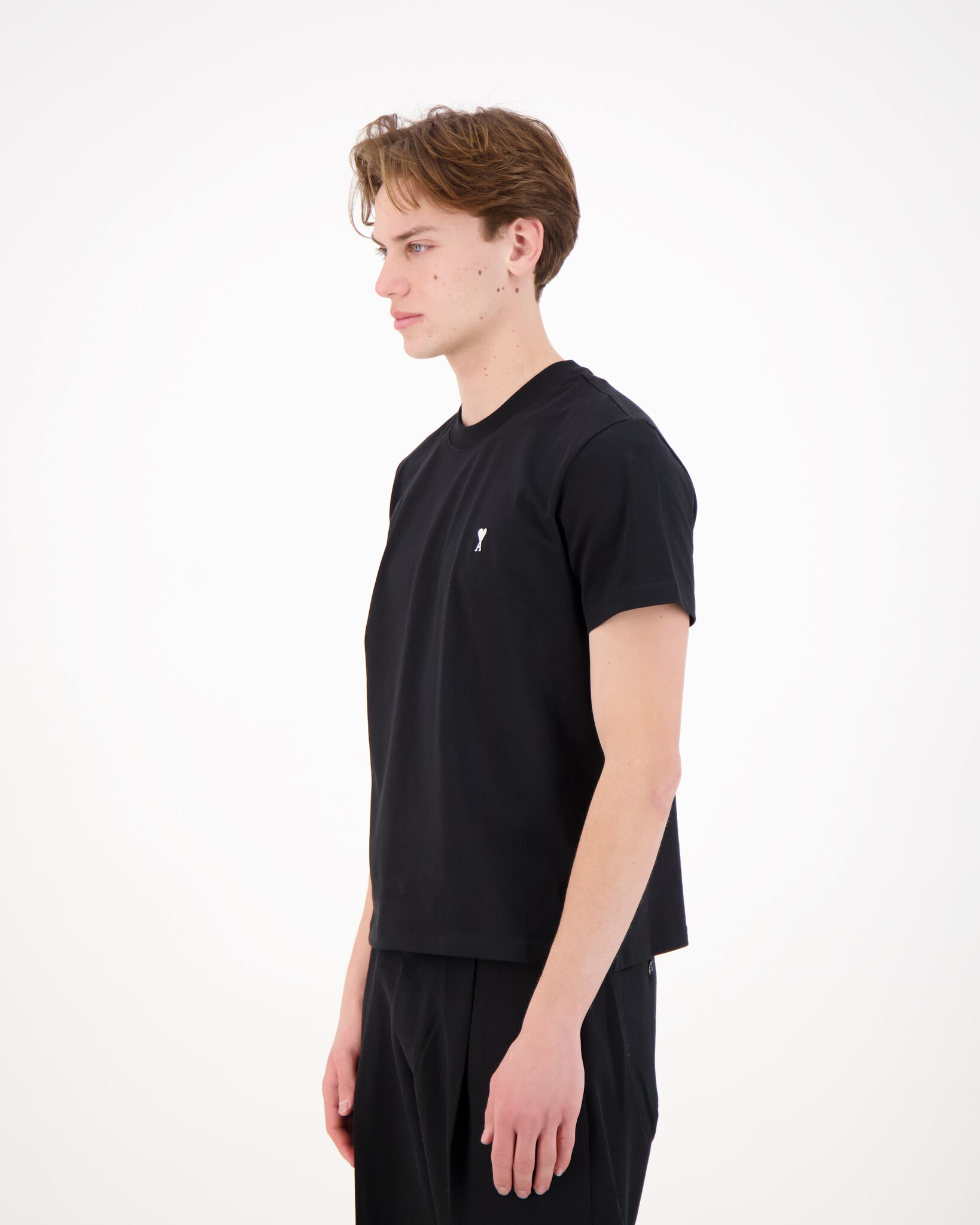 Zwarte ADC Patch Hoodie van het merk Ami Paris. Witte crème Ami de Coeur borstborduursel.