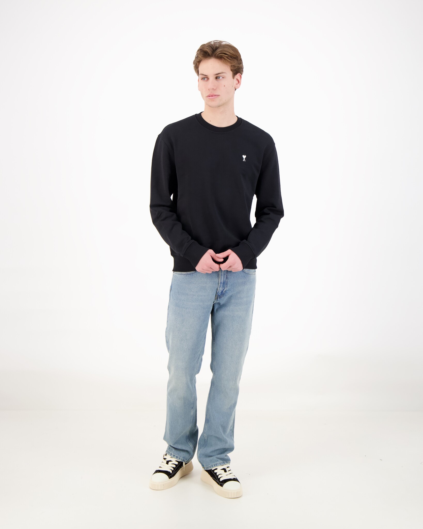 Deze Zwarte Ami de Cœur-sweater van biologisch katoen combineert comfort en stijl moeiteloos. Met het iconische hartlogo op de borst draag je een stukje AMI – subtiel, tijdloos, oprecht.