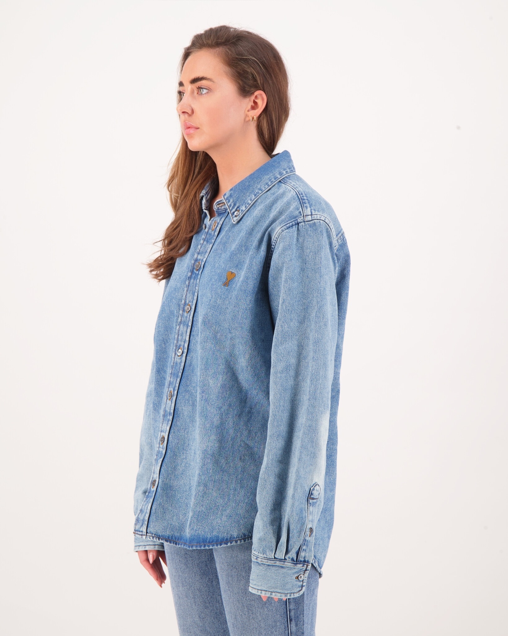 Dit tijdloze Unisex Oxford‑overhemdenmodel combineert klassieke herenkleding met AMI Paris’ kenmerkende verfijnde stijl. De button-down kraag en parelmoer knopen geven een slanke, verzorgde look, terwijl de hartborduring subtiel een statement maakt. Doordat het shirt unisex is en in neutrale pasvorm komt, past het moeiteloos over chino’s, jeans of onder een blazer.