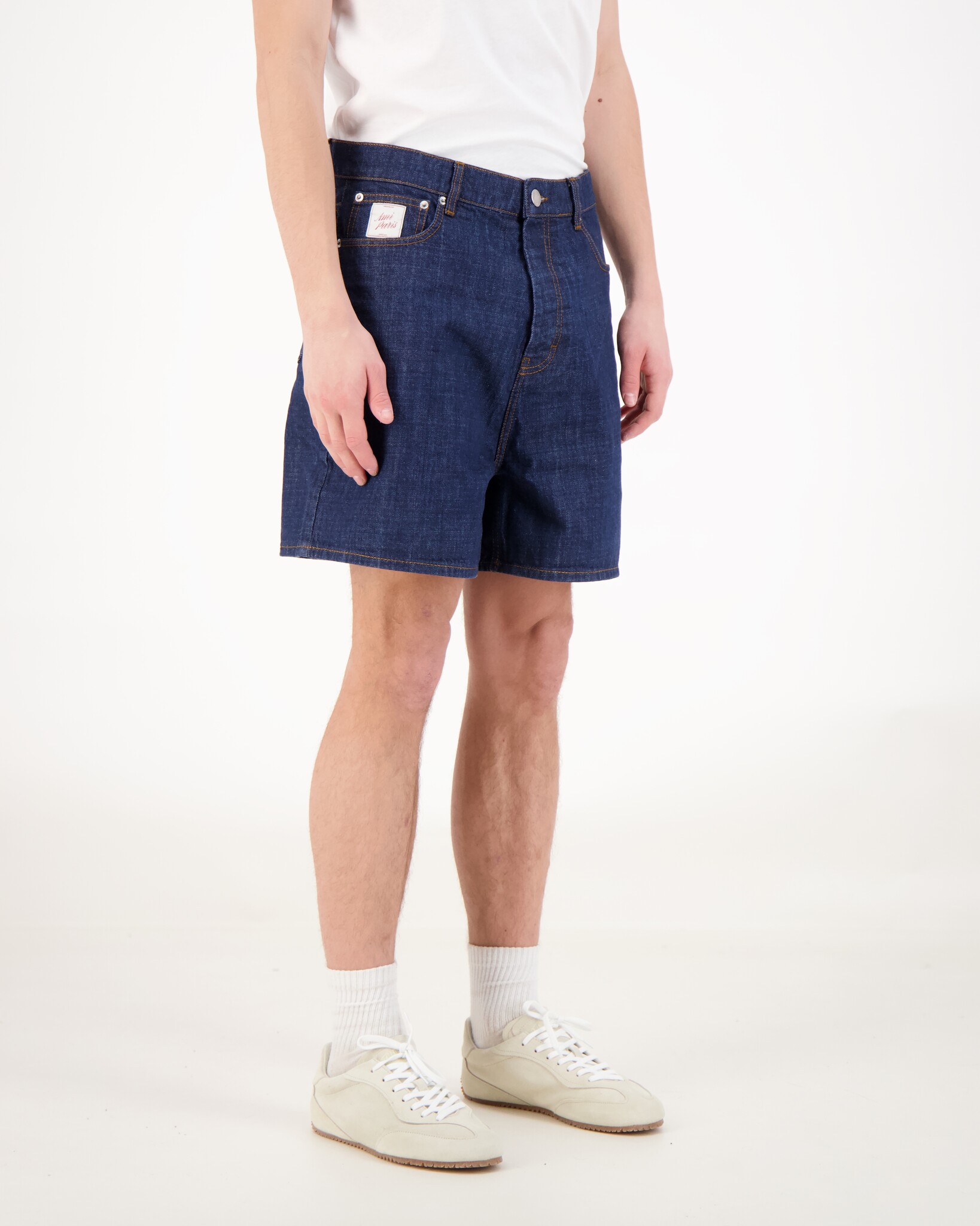 Blauwe AMI Paris Heritage-label Short Jeans van het merk Ami Paris. Deze blauwe short jeans van Ami Paris is gemaakt van raw indigo denim en heeft een tijdloze, authentieke uitstraling. Het model heeft een regular waist, een 5-pocket design en een knoopsluiting. Afgewerkt met nikkelkleurige metalen rivets en knopen, tobacco topstitches, een heritage-label op het coin pocket en een “ami alexandre mattiussi” paper jacron op de achterkant.