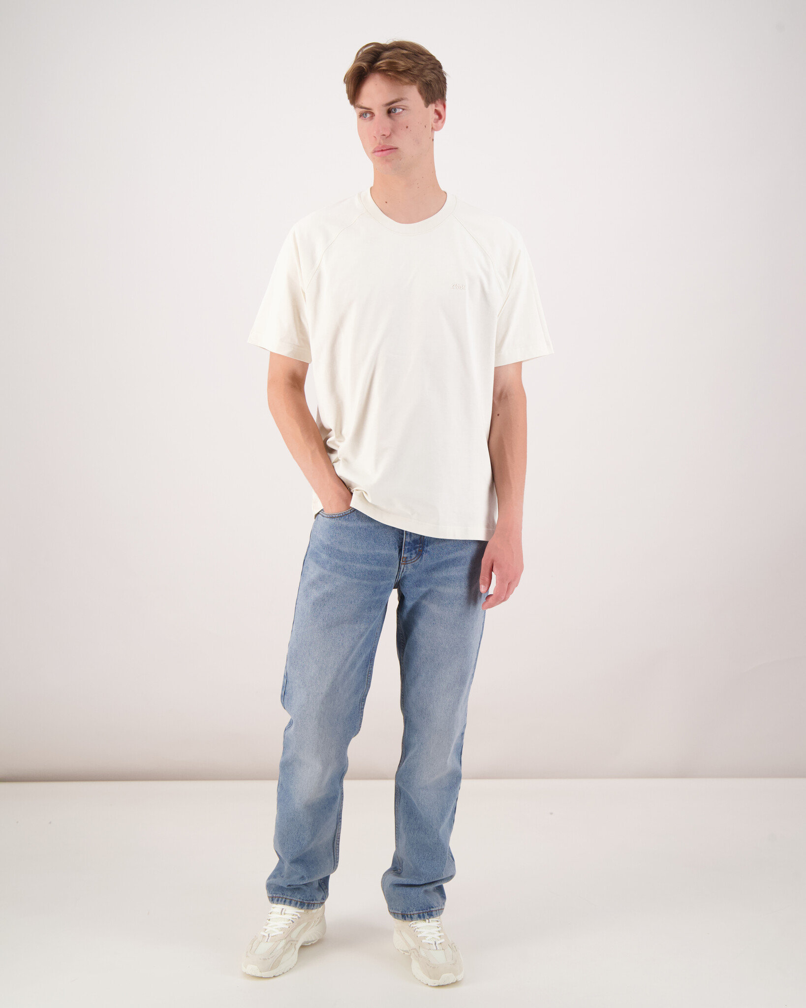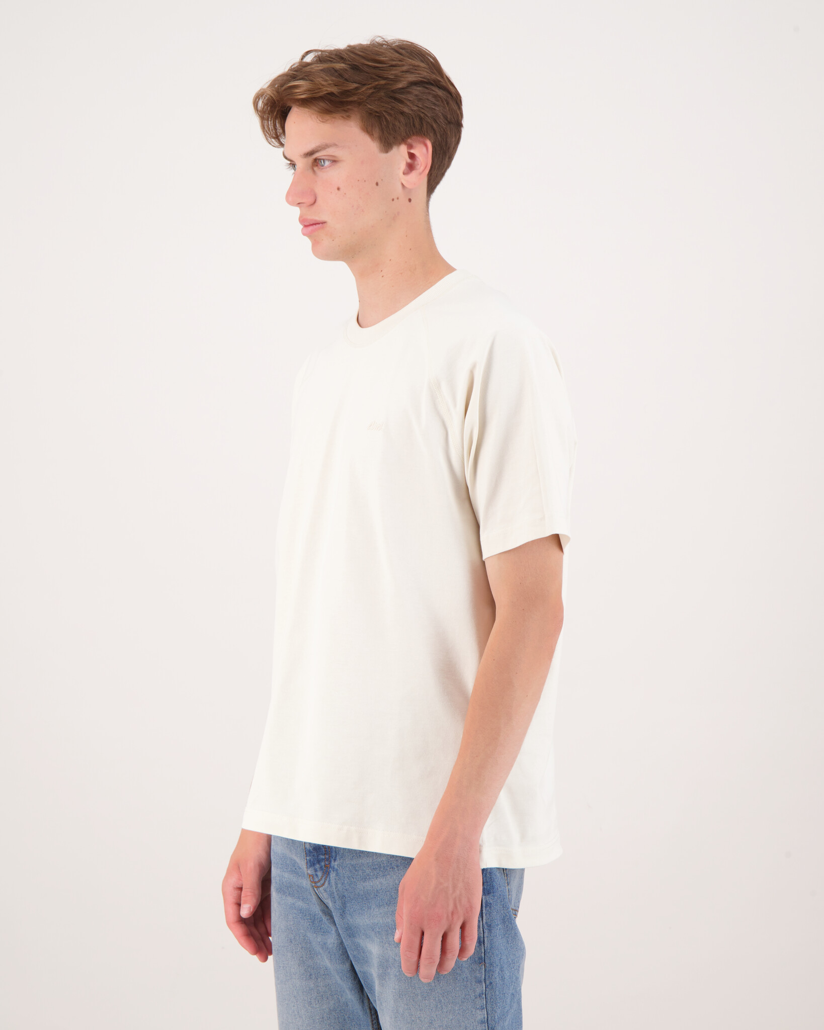 Wat direct opvalt, is het fijne, ton-sur-ton borduurtje: een schuine “ami” op de borst, aangevuld met eenzelfde subtiel logo net onder de nek aan de achterkant . Die details geven het shirt net dat beetje persoonlijkheid zonder de minimalistische uitstraling te doorbreken.