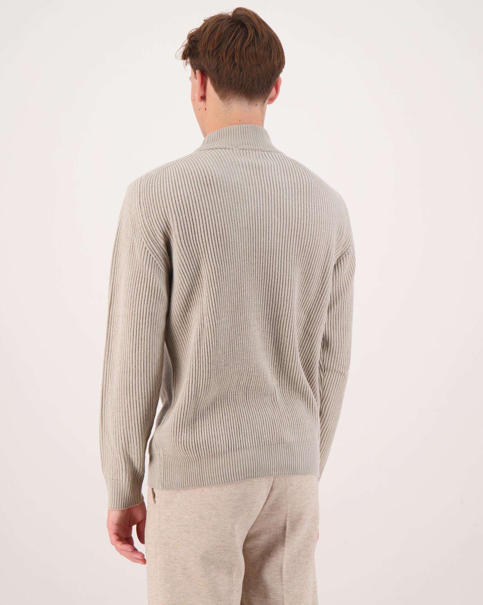 Greige Costa Inglese Mockneck Cashwool Trui van het merk Aurélien. Zo zacht als Cashmere met een zijde glans. Deze trui is handgemaakt in Italië van het ultra luxe Cashwool ®. Cashwool ® is een bijzonder fijn materiaal wat enkel afkomstig is van de Australische Merino schapen. Het Merino wol is zo fijn dat de vezel een diameter van slechts 19.5 micron heeft. Deze veelzijdige trui zal een toevoeging zijn voor elke garderobe omdat het gemakkelijk te dragen is met bijna elke formele of casual look. De trui heeft een perfecte dikte die zowel los te dragen is of als extra laagje.