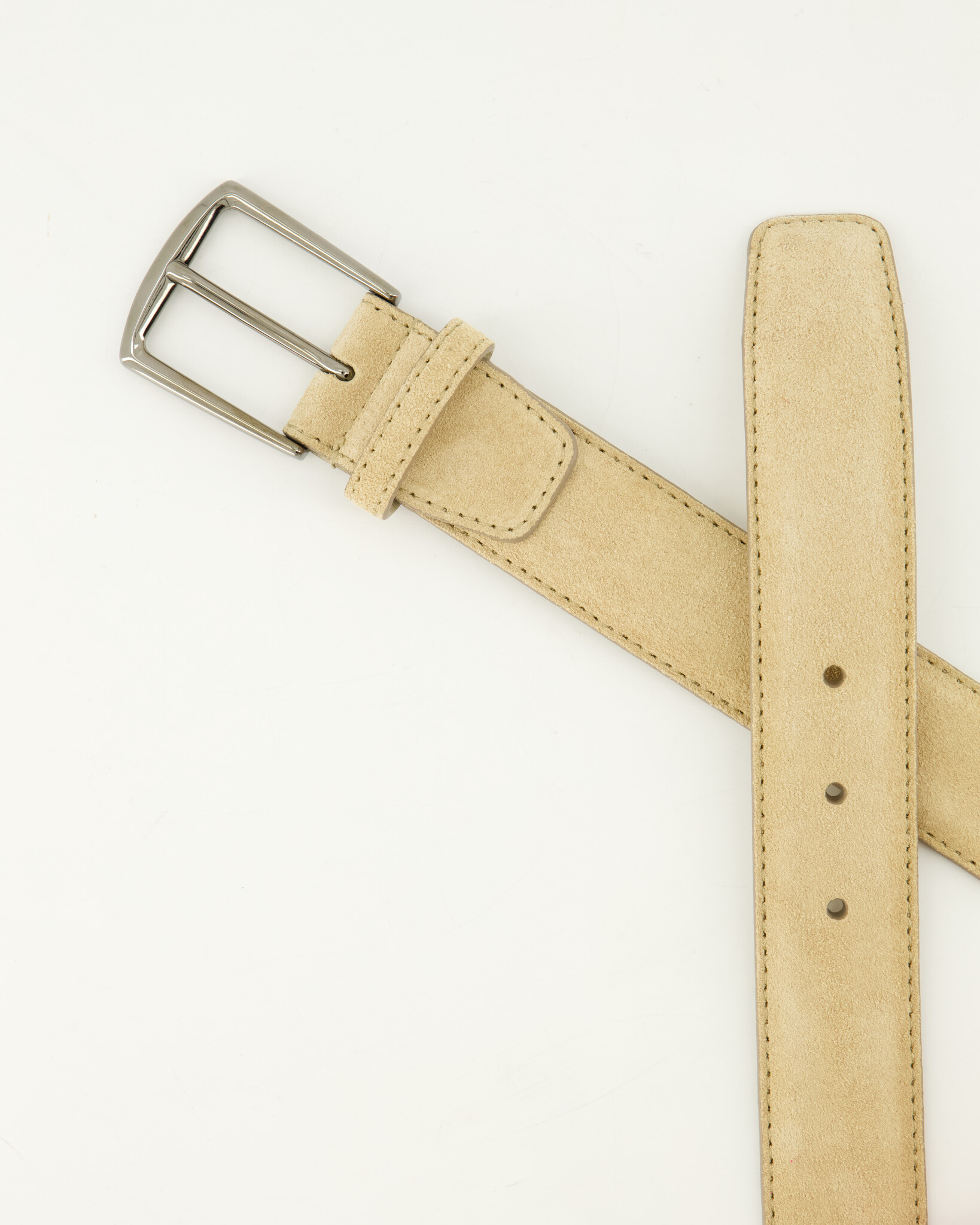 Voeg een subtiel luxe accent toe aan je outfit met deze hoogwaardige suèderiem in een zachte taupe/beige tint. Het bovenmateriaal is gemaakt van verfijnd suède (Softey®) met een nubuck‑interieur, afgewerkt met een gun‑metal gesp die de riem een moderne en toch tijdloze uitstraling geeft.