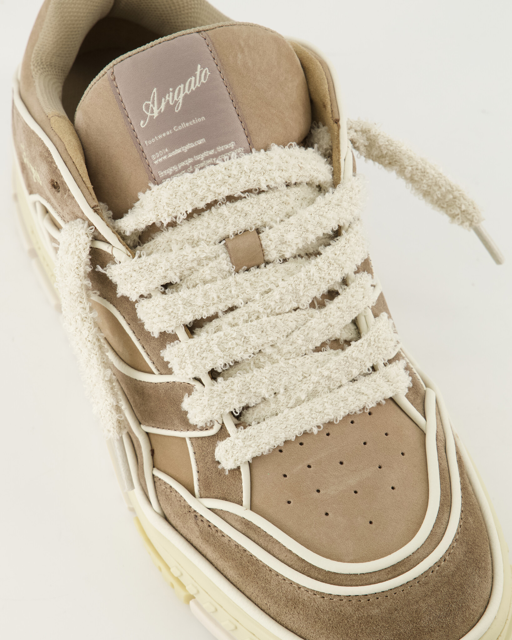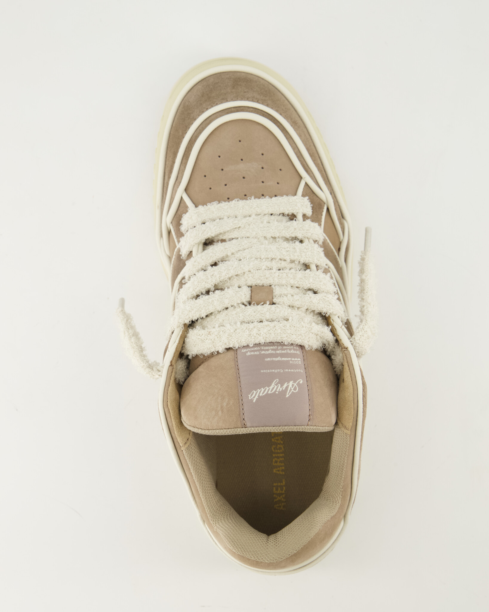 Bruine Area Lo Piping Sneaker van het merk Axel Arigato. Is een moderne, minimalistische sneaker met een retro geïnspireerd design. Het model combineert strakke lijnen met sportieve details en is uitgevoerd in hoogwaardig leer en suède. De contrasterende "piping"-details geven de schoen een verfijnde en unieke uitstraling. De sneaker heeft een robuuste rubberen zool en een comfortabele pasvorm, ideaal voor dagelijks gebruik. Zoals bij alle Axel Arigato schoenen, staat kwaliteit, vakmanschap en stijl centraal.