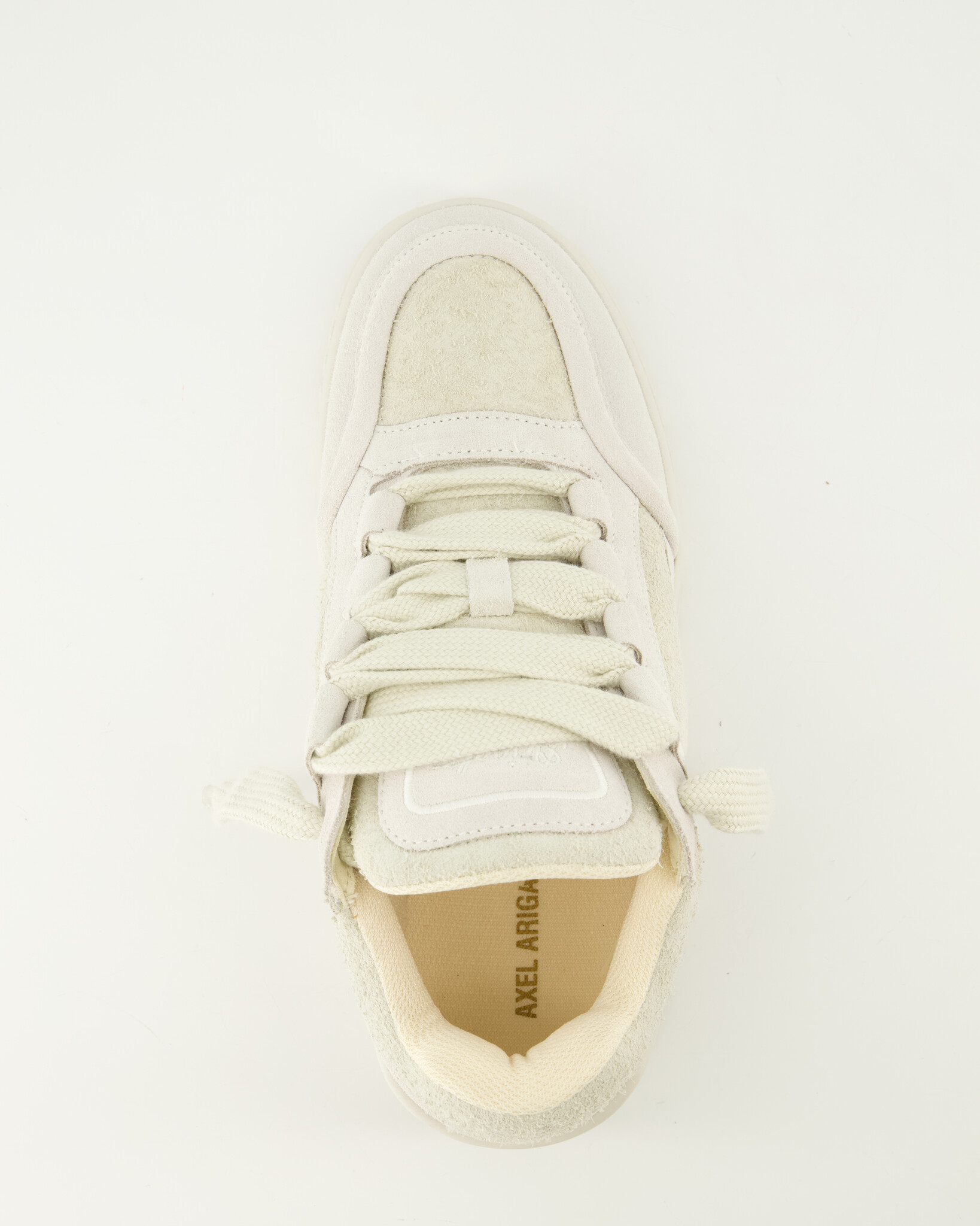 Deze sneaker van Axel Arigato is gemaakt van 100% suède en combineert een retro basketbalstijl met moderne details. De offwhite kleur geeft een cleane, tijdloze look. Op de onderkant van de zool prijkt subtiel het Axel Arigato-logo