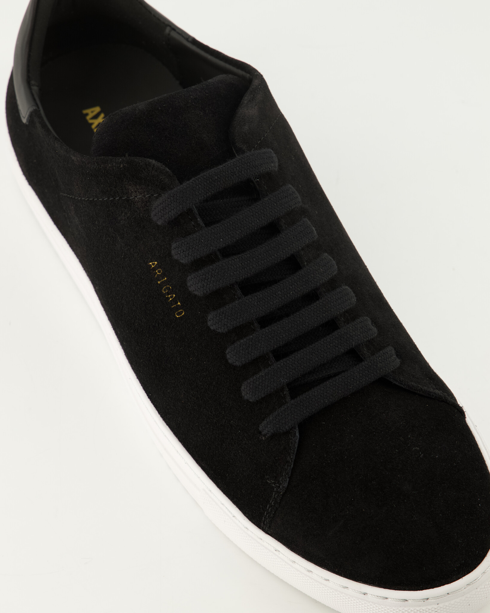 De Axel Arigato Clean 90 Suede Sneaker in de kleur zwart is een stijlvolle, minimalistische schoen met een luxe uitstraling. Het bovenwerk is gemaakt van hoogwaardig suède, afgewerkt met leren details en een subtiel goudkleurig logo aan de zijkant. De voering bestaat uit een combinatie van leer en gerecyclede materialen, wat bijdraagt aan zowel comfort als duurzaamheid. De stevige rubberen zool, deels van gerecycled materiaal, is met zowel stiksel als lijm bevestigd voor extra stevigheid.