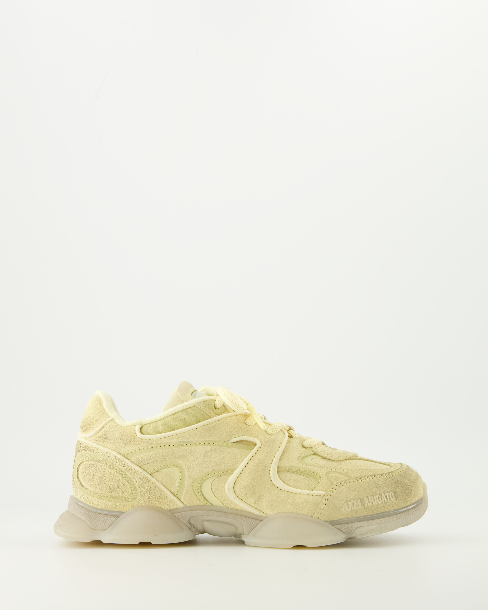 De Eris-sneaker belichaamt onze toewijding aan het combineren van uitzonderlijk vakmanschap met grensverleggend experimenteel design. Hij staat op een overdreven grote buitenzool die voorbij de omtrek van het lage bovenwerk uitsteekt, waardoor vanuit elke hoek een opvallend visueel contrast ontstaat. Deze sneaker is een toonbeeld van technische vakbekwaamheid en is met de hand opgebouwd uit 36 afzonderlijke onderdelen. Hij heeft een ingewikkeld in elkaar vergrendelde buitenkant voor een kenmerkende paneelafwerking, samen met een getextureerde schuurpapierachtige afwerking onder de soklijn.