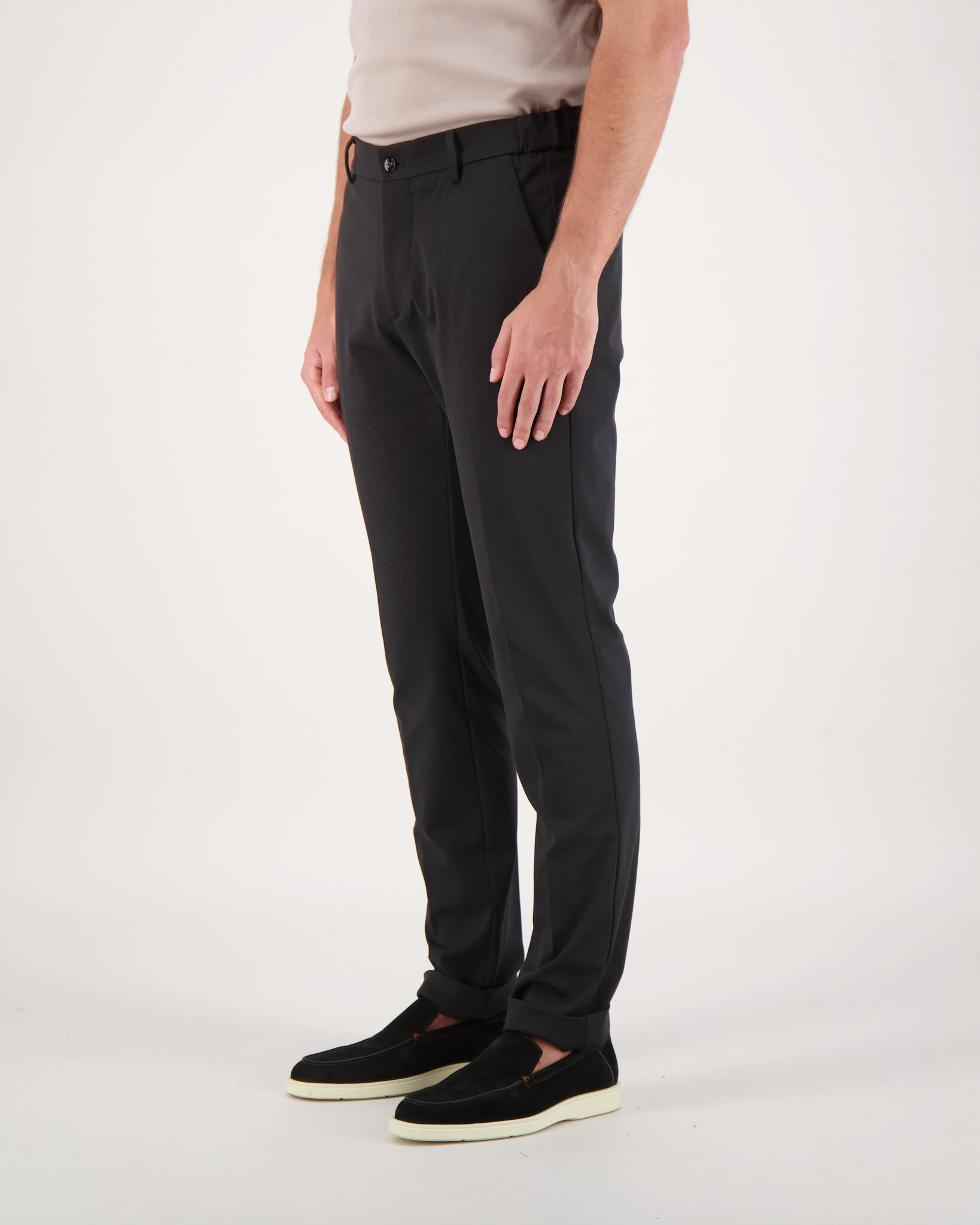 Zwarte Morello Elax Pantalon van het merk Berwich. Deze pantalon heeft 2 steekzakken en 2 achterzakken.