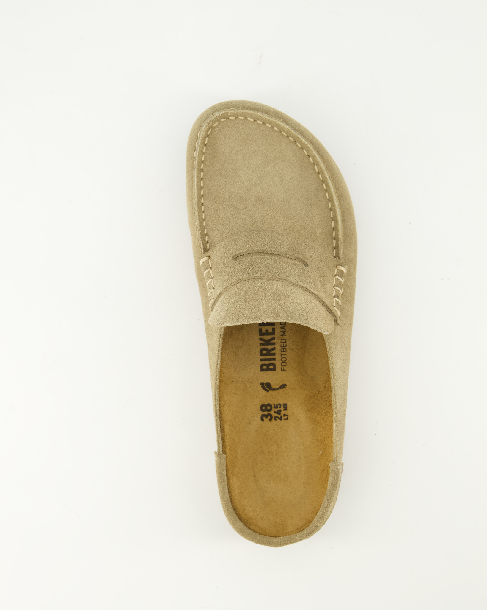 De Birkenstock Naples Wrapped Suede Leather in taupe combineert comfort met een tijdloze en stijlvolle uitstraling. Deze instapper is uitgevoerd in hoogwaardig suède leer dat zorgt voor een zachte en luxe look. Het minimalistische ontwerp met subtiele sluiting geeft het model een moderne uitstraling, terwijl het anatomisch gevormde voetbed optimale ondersteuning biedt en zich naar de voet vormt. De lichtgewicht zool zorgt voor flexibiliteit en grip, waardoor deze schoen ideaal is voor dagelijks gebruik en eenvoudig te combineren is met zowel casual als meer geklede outfits.