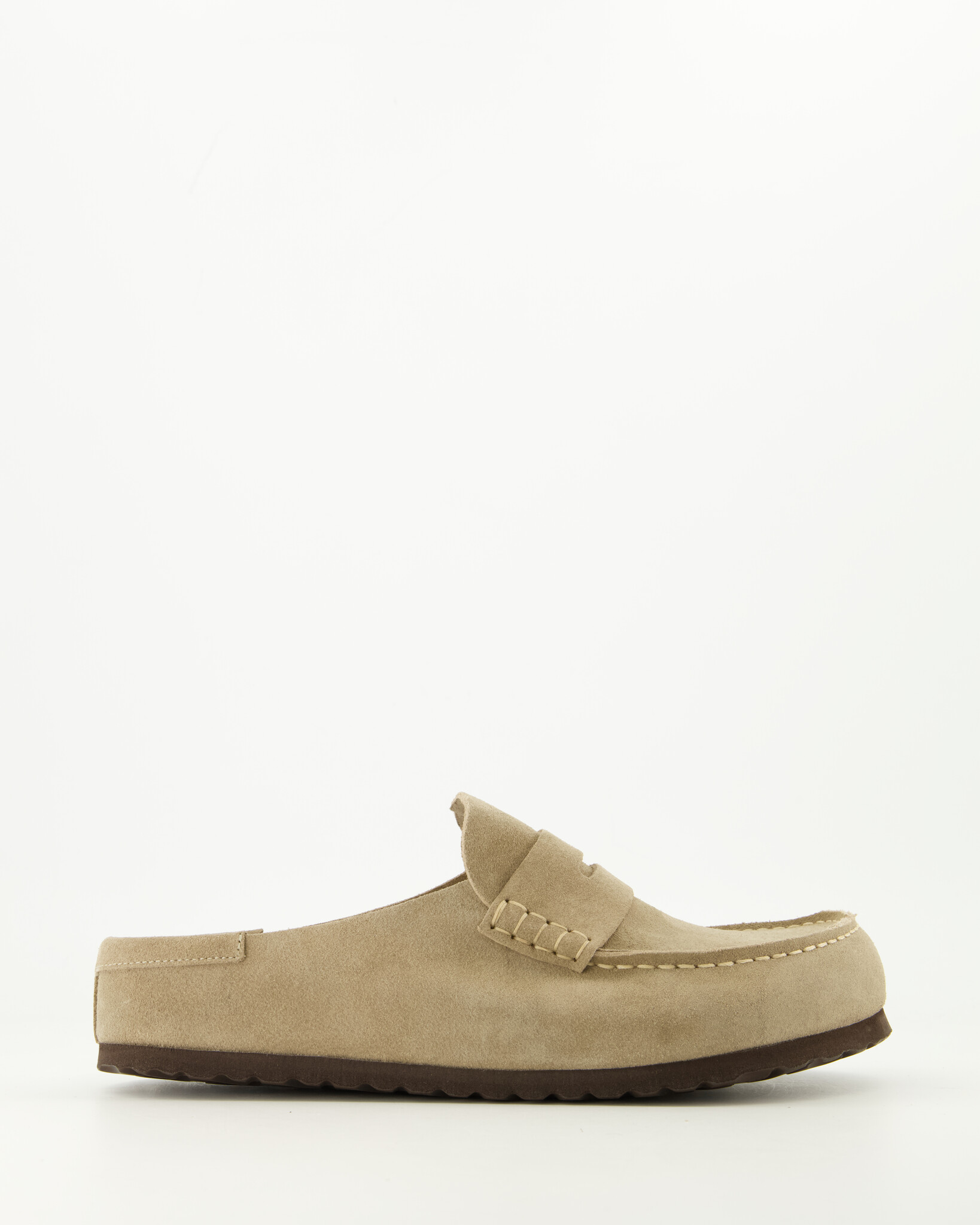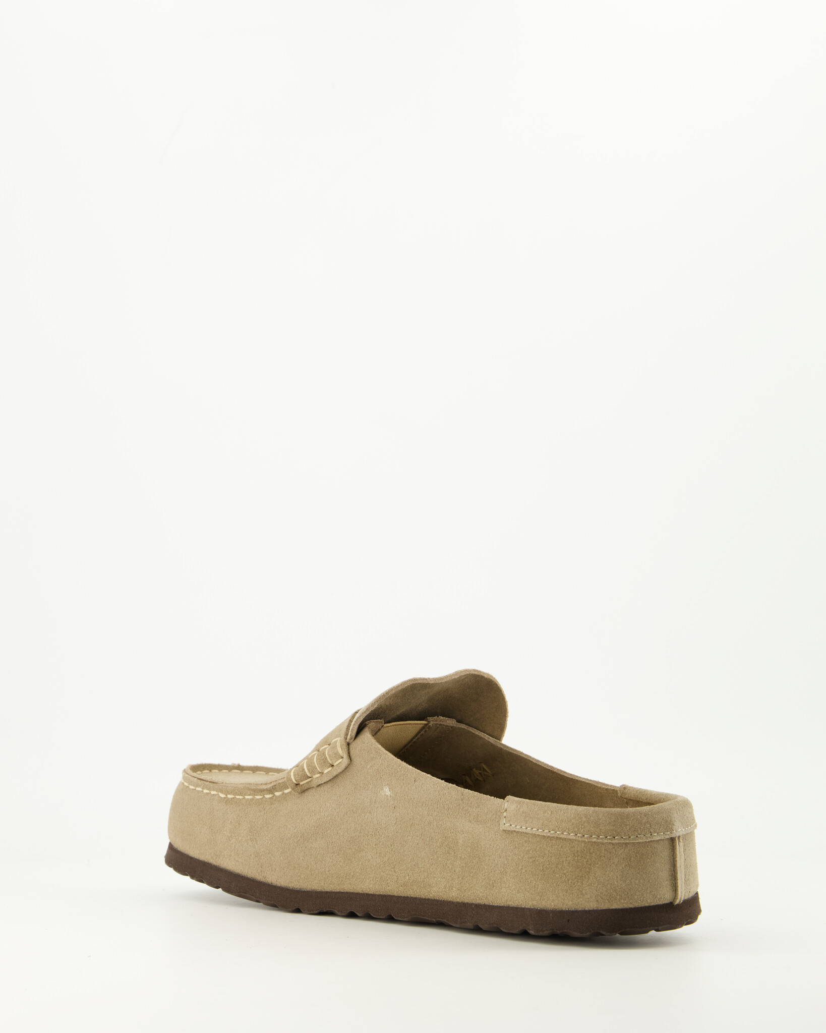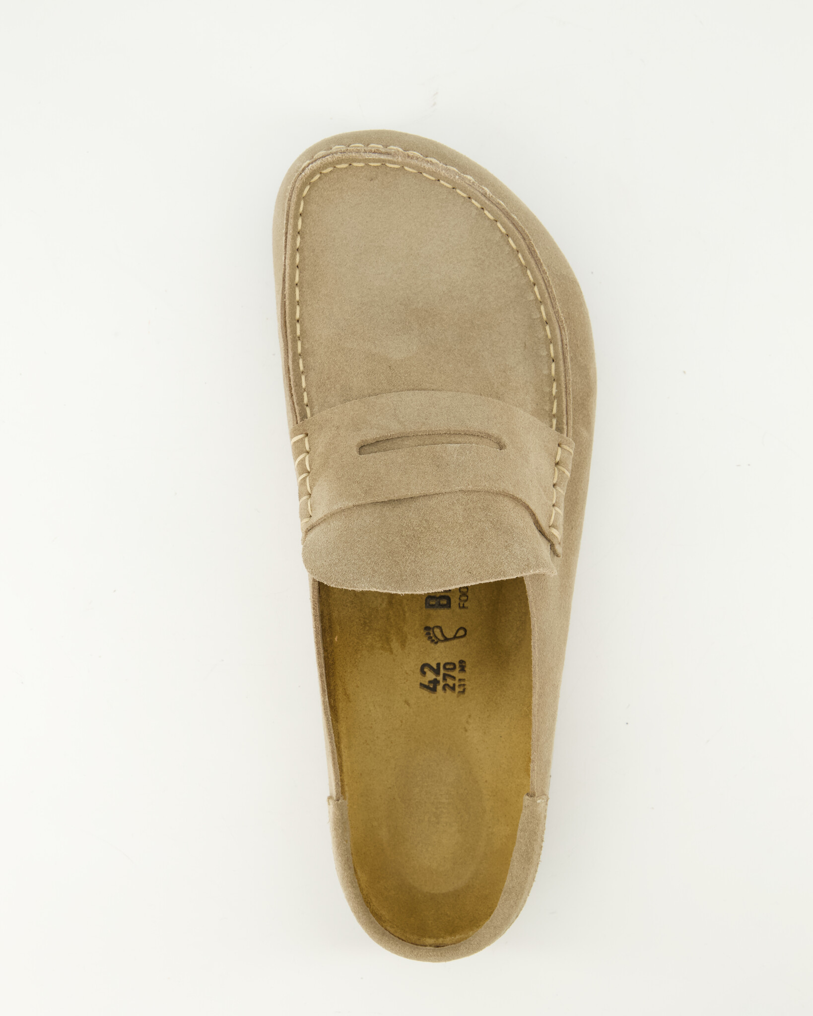 De Birkenstock Naples Wrapped Suede Leather in taupe combineert comfort met een tijdloze en stijlvolle uitstraling. Deze instapper is uitgevoerd in hoogwaardig suède leer dat zorgt voor een zachte en luxe look. Het minimalistische ontwerp met subtiele sluiting geeft het model een moderne uitstraling, terwijl het anatomisch gevormde voetbed optimale ondersteuning biedt en zich naar de voet vormt. De lichtgewicht zool zorgt voor flexibiliteit en grip, waardoor deze schoen ideaal is voor dagelijks gebruik en eenvoudig te combineren is met zowel casual als meer geklede outfits.