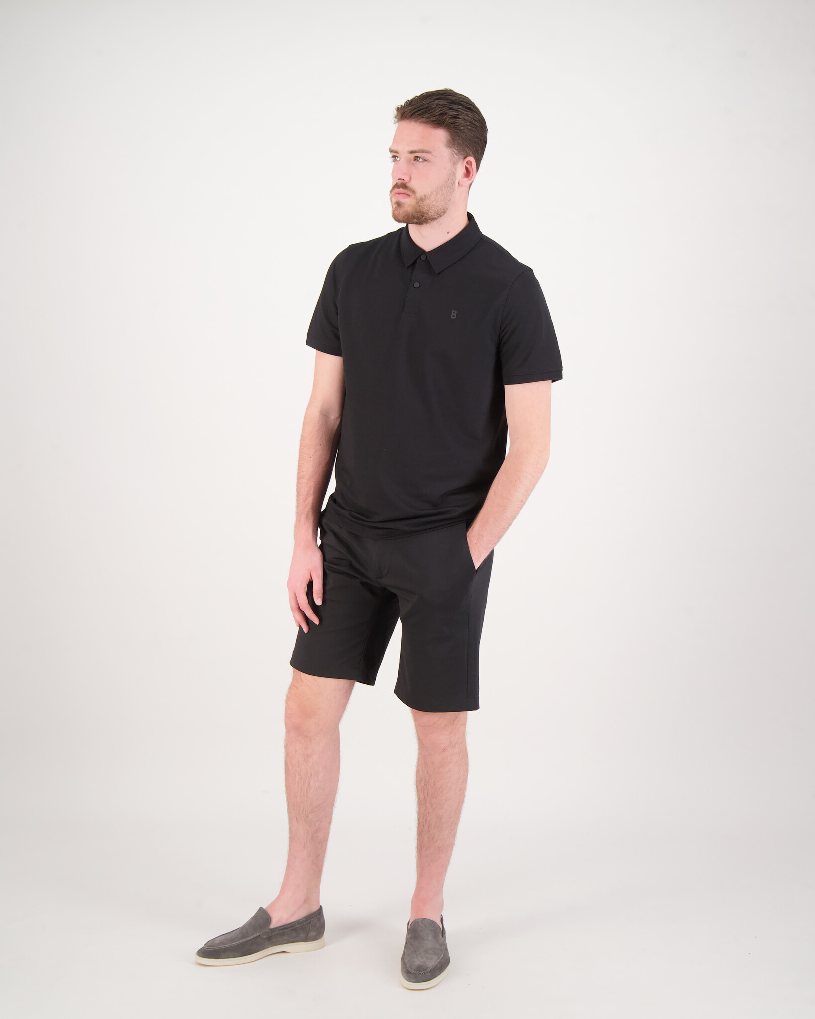 Zwarte Timo Polo van het merk Bogner. De polo heeft korte mouwen, sluit met 2 zwarte knoopjes en heeft het Bogner logo links op de borst.