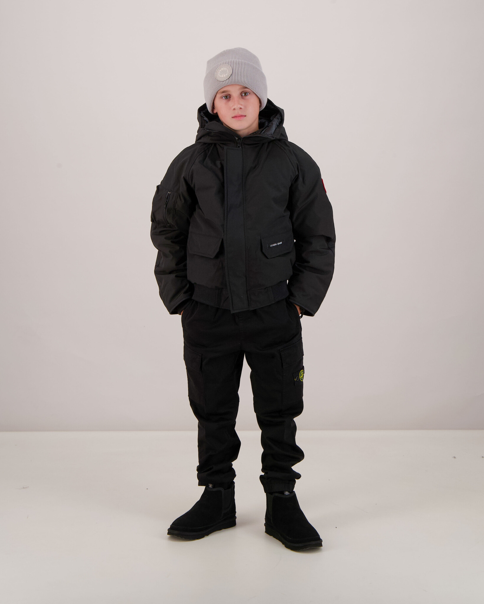 Warme, duurzame bomberjas voor kids, met 625-fill dons, een verstelbare capuchon, en ribboorden tegen de kou. Voorzien van het Gosling Graduate System voor meegroei-mouwen. Gemaakt in Canada met oog voor comfort en functionaliteit.