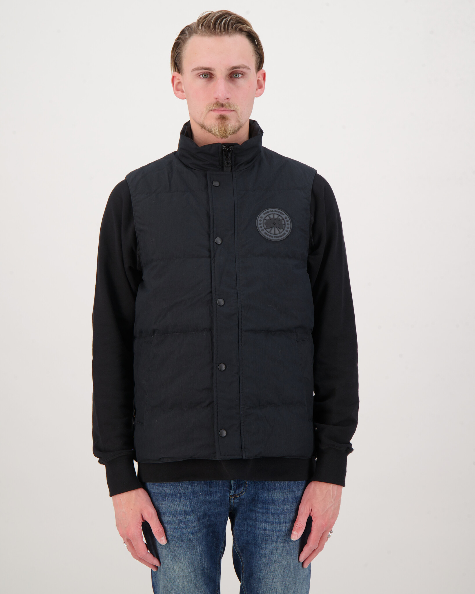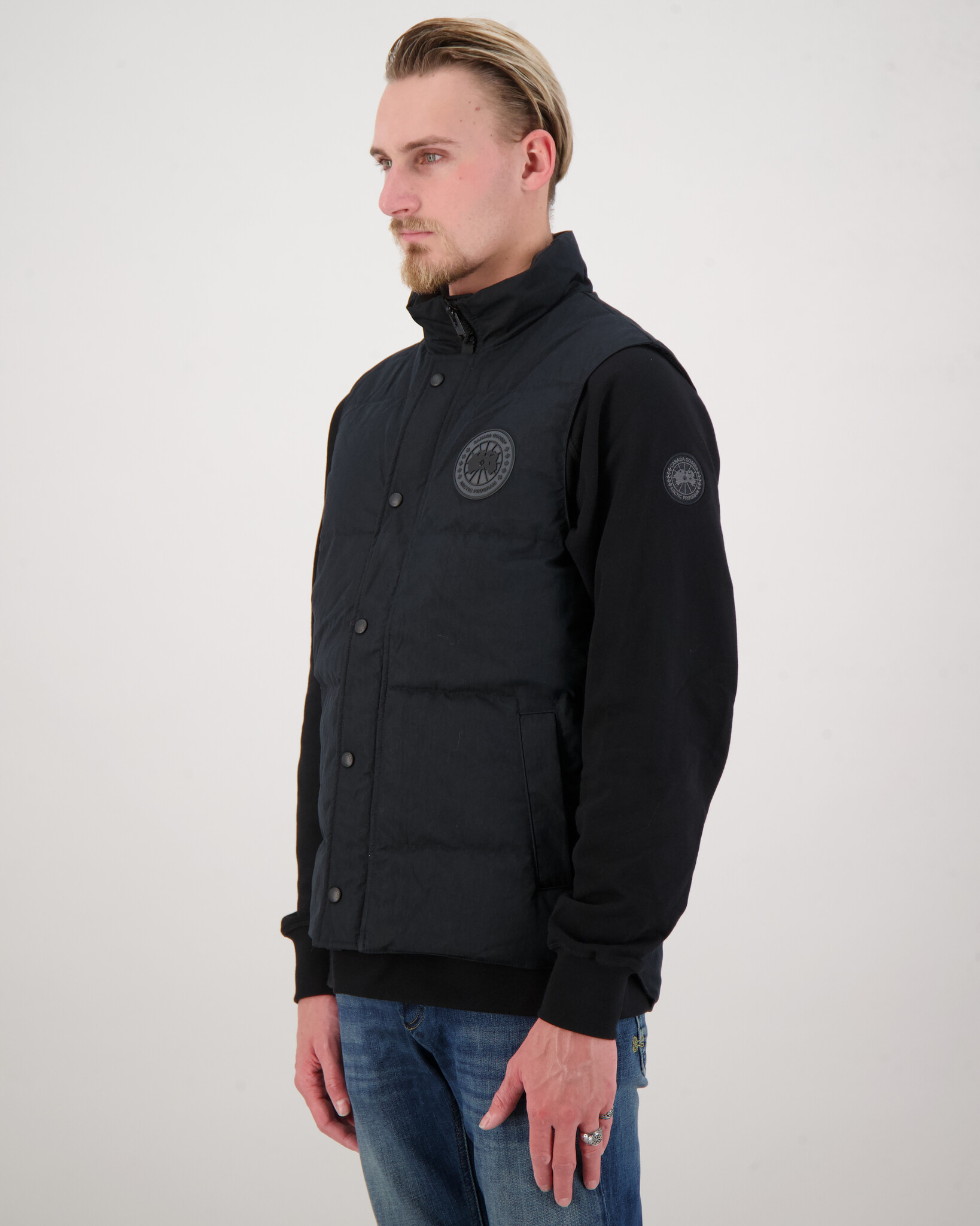 Zwarte Mens Garson Vest van het merk Canada Goose. Deze bodywarmer biedt warmte waar het het meest nodig is , heeft een opstaande kraag waardoor deze beschermt tegen de wind. Ook de windflap die over de rits sluit houdt de wind goed tegen. De bodywarmer kan alle seizoenen gedragen worden en biedt extra warmte bij een temperatuur tot -5°C.