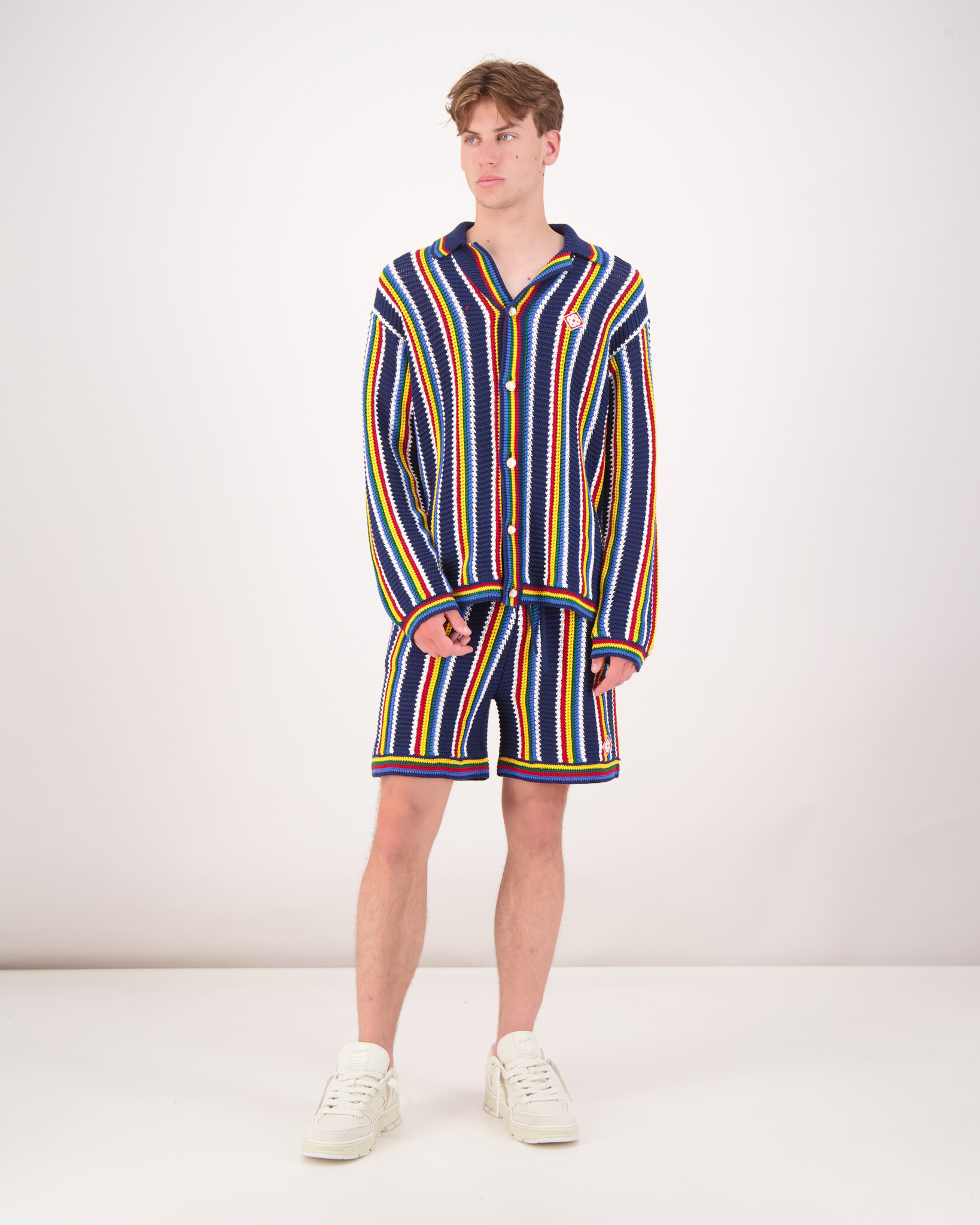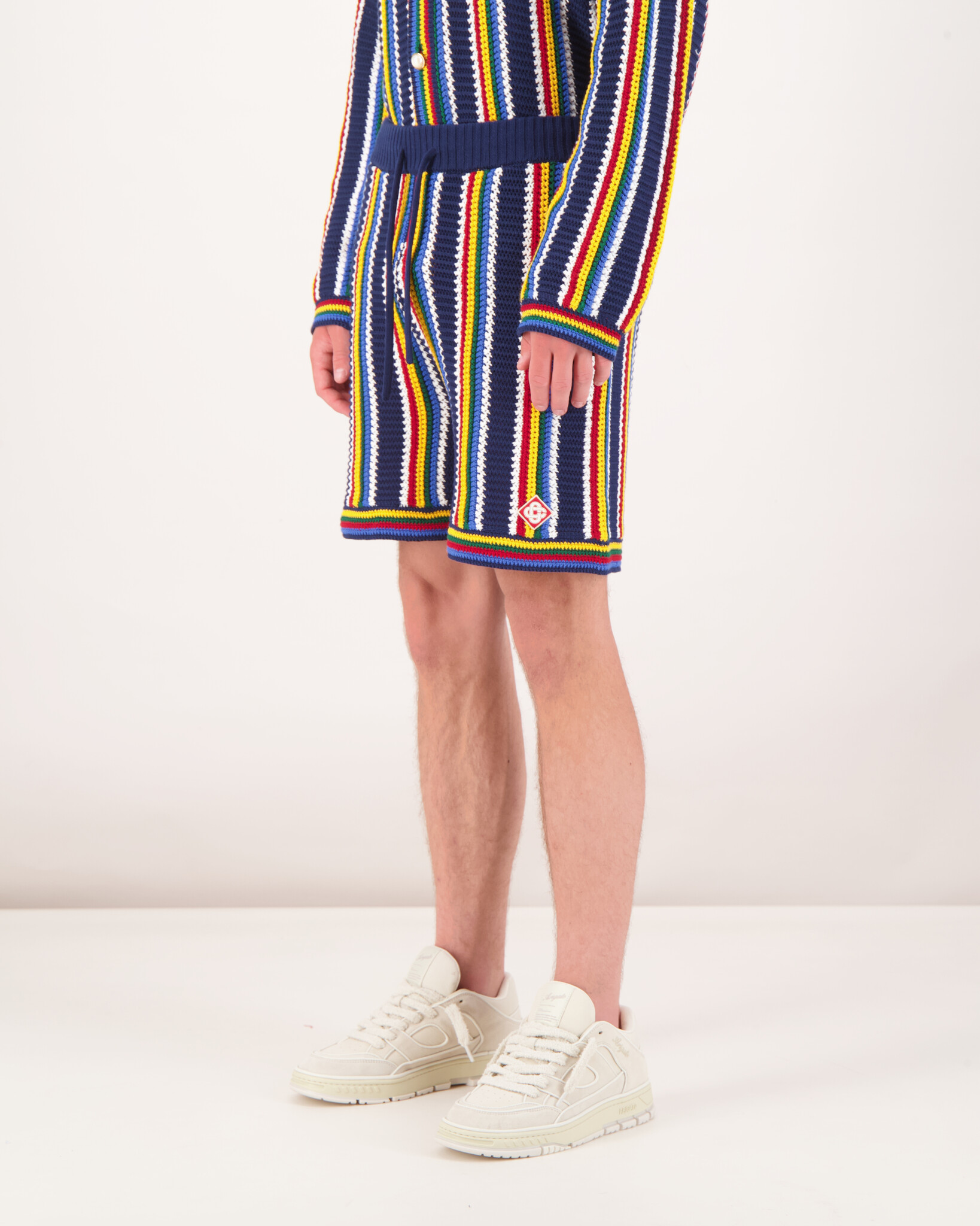 Breng vakmanschap en levendige flair samen met deze Ibiza-toffe crochet shorts. Het items is gemaakt van een textuurrijk gehaakt katoenblend , en combineert relaxte vibes met high-end afwerking – allemaal herkenbaar aan de subtiel weggewerkte Casablanca-diamond patch op het voorbeen.