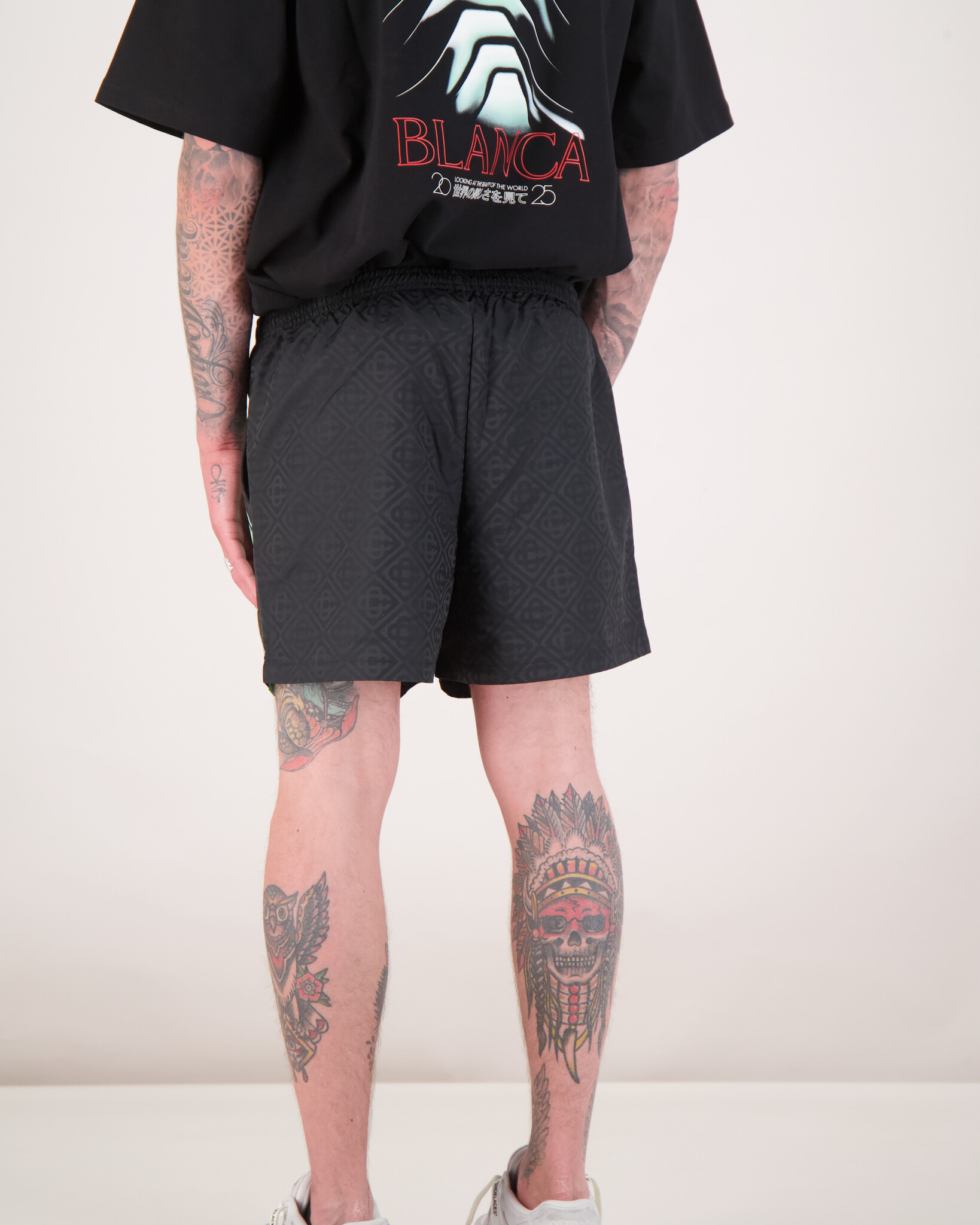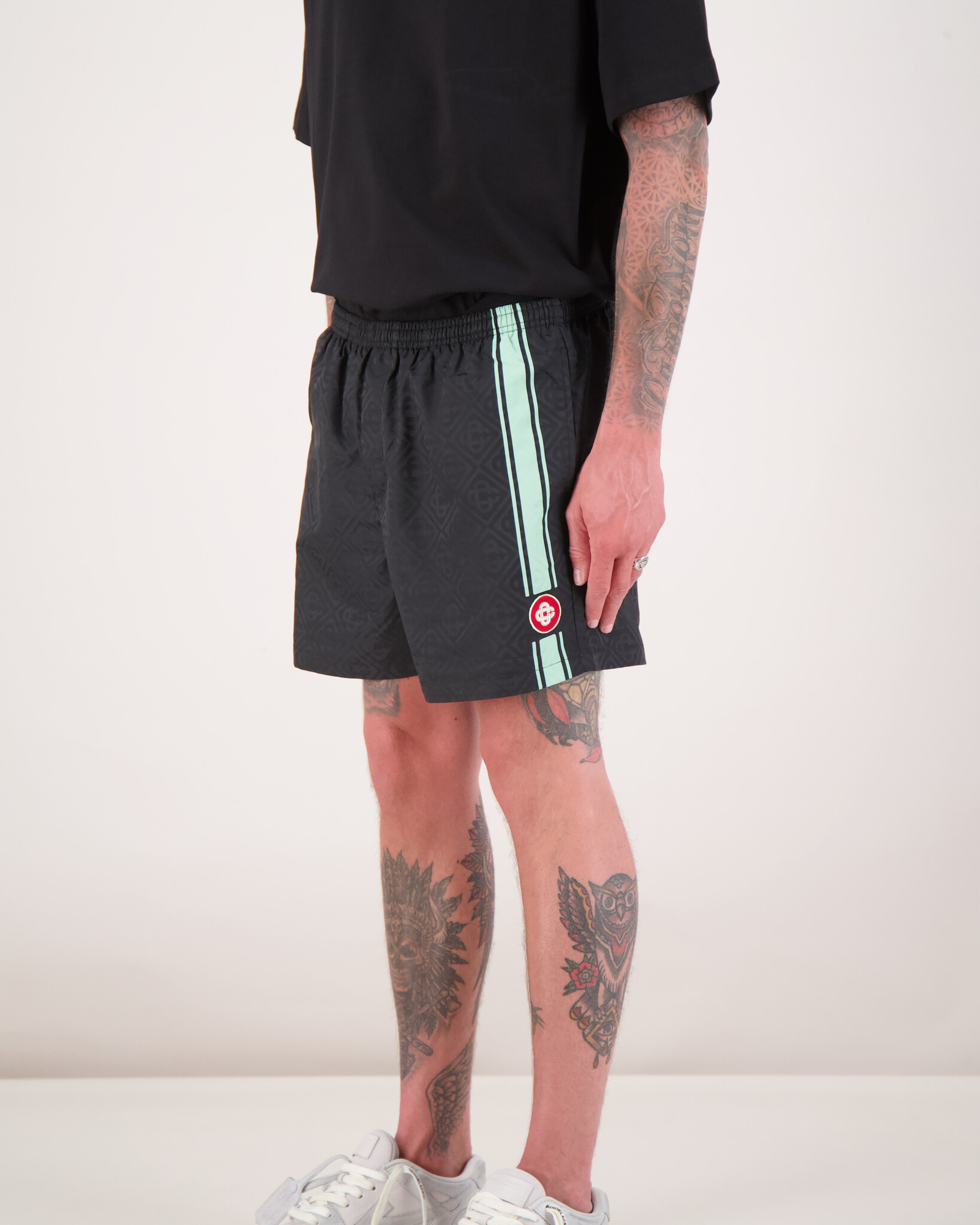 Zwarte Jacquard Printed Swim Short van het merk Casablanca. De short heeft twee zakken en logo op de streep.