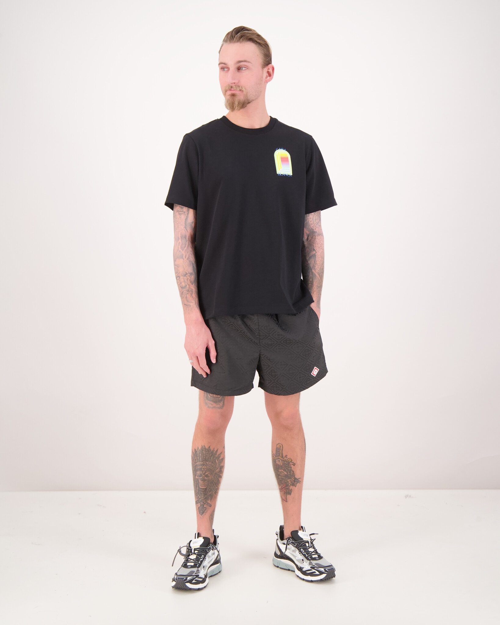 Op de borst prijkt een opvallende geprinte arch-print, geïnspireerd door de iconische boog, een symbool van kracht en elegantie. Deze subtiele maar karaktervolle print geeft het shirt een artistieke vibe, perfect voor zowel casual streetwear als geklede lagen.