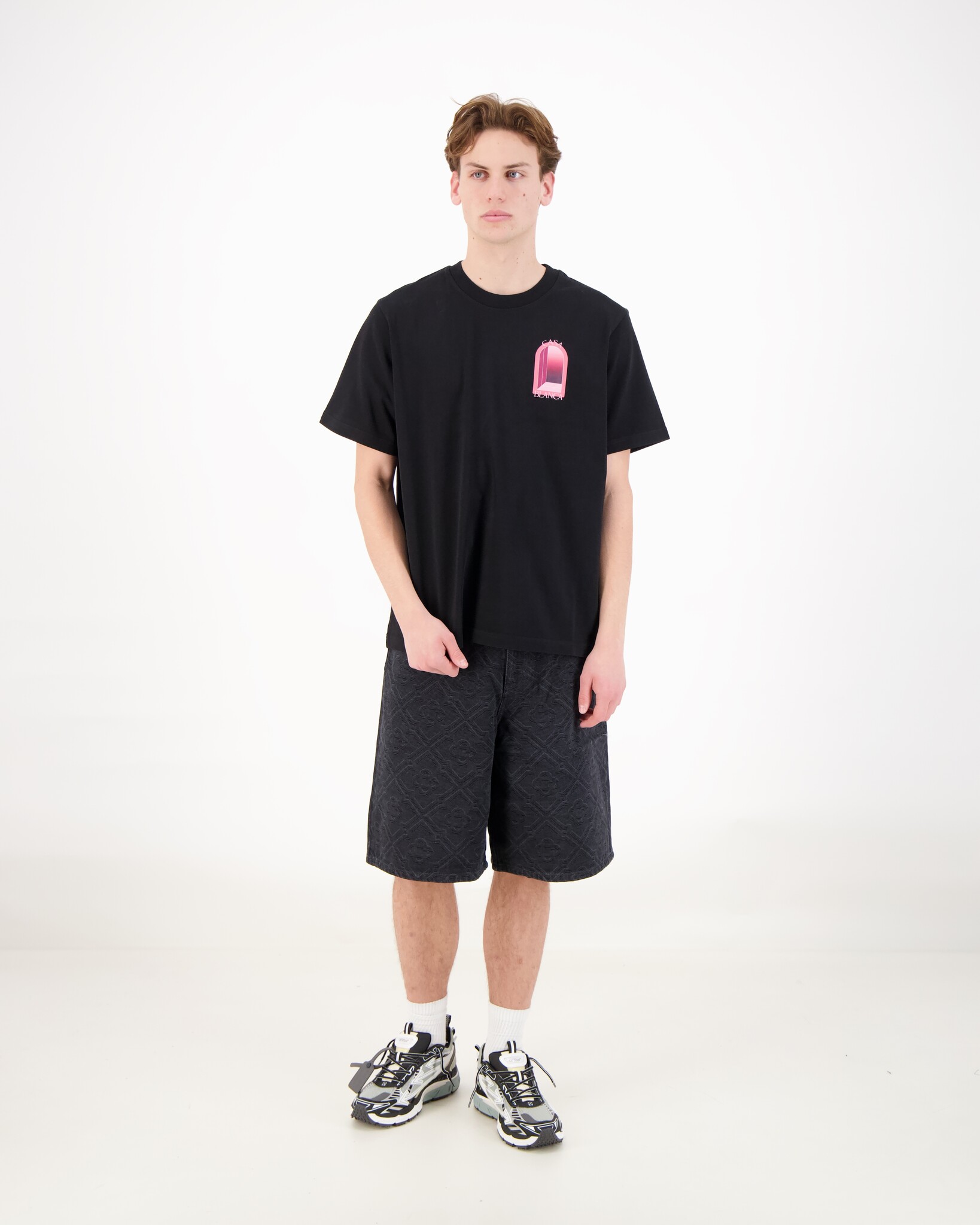 Zwarte Laser Monogram Denim Short van het merk Casablanca. De denim shorts met laser monogram zijn knielang en voorzien van het monogrampatroon van het huis, dat met lasertechnieken is aangebracht. Afgewerkt met voorzakken in jeansstijl, opgestikte achterzakken, een knoop- en ritssluiting, vergulde hardware met merklogo en een eigentijds silhouet.