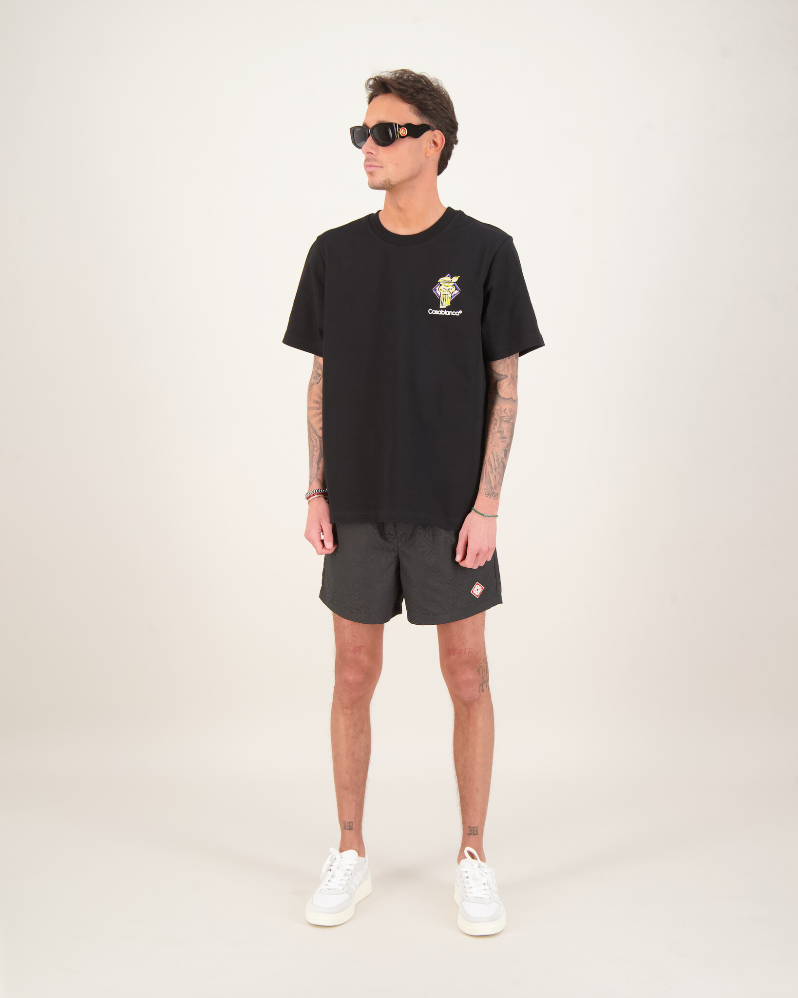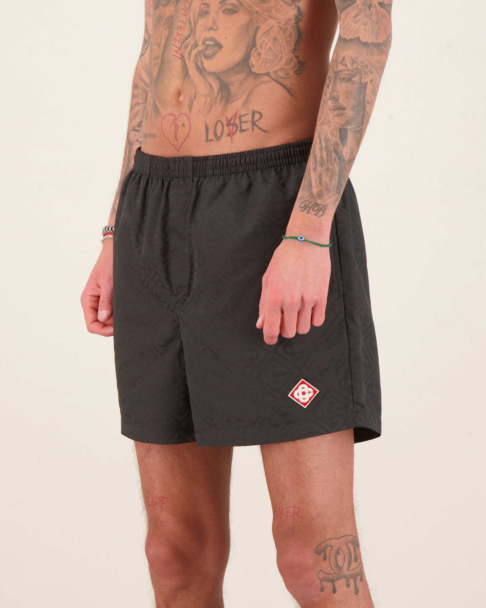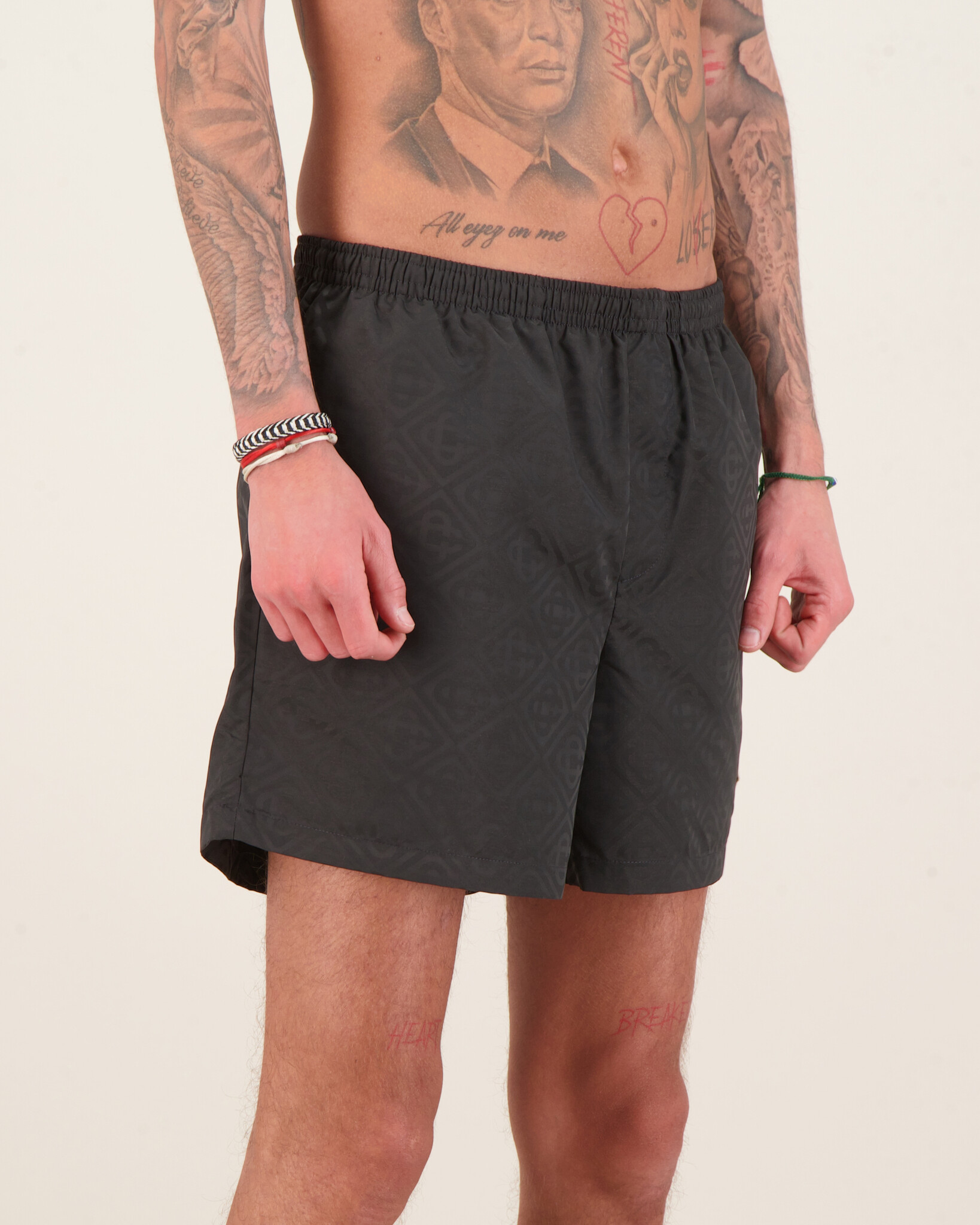 Zwarte 'Printed Swimshort' van het merk Casablanca. De Zwembroek heeft aan de zijkant een print.
