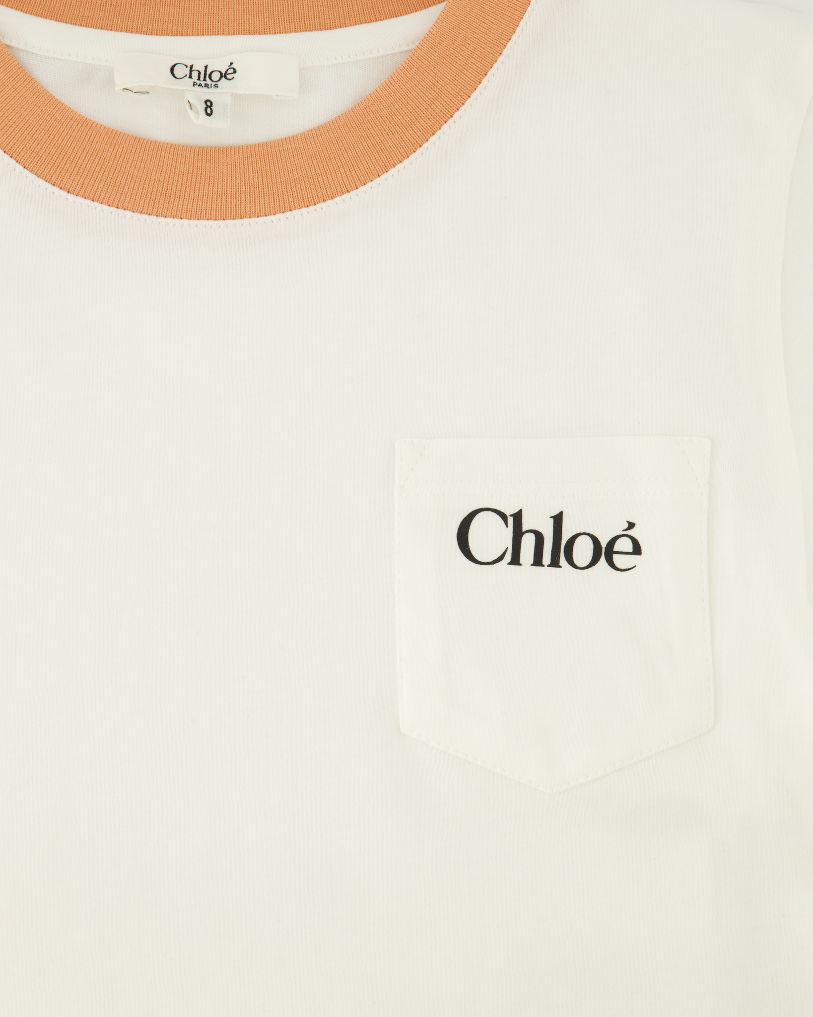 Dit Chloé Kids T-shirt combineert een tijdloze uitstraling met comfortabel draaggemak. Het shirt is gemaakt van zacht biologisch katoenen jersey en heeft een rechte, relaxte pasvorm. Op de borst bevindt zich een opgestikte zak met een subtiele Chloé-logoprint, wat zorgt voor een herkenbare en stijlvolle touch.