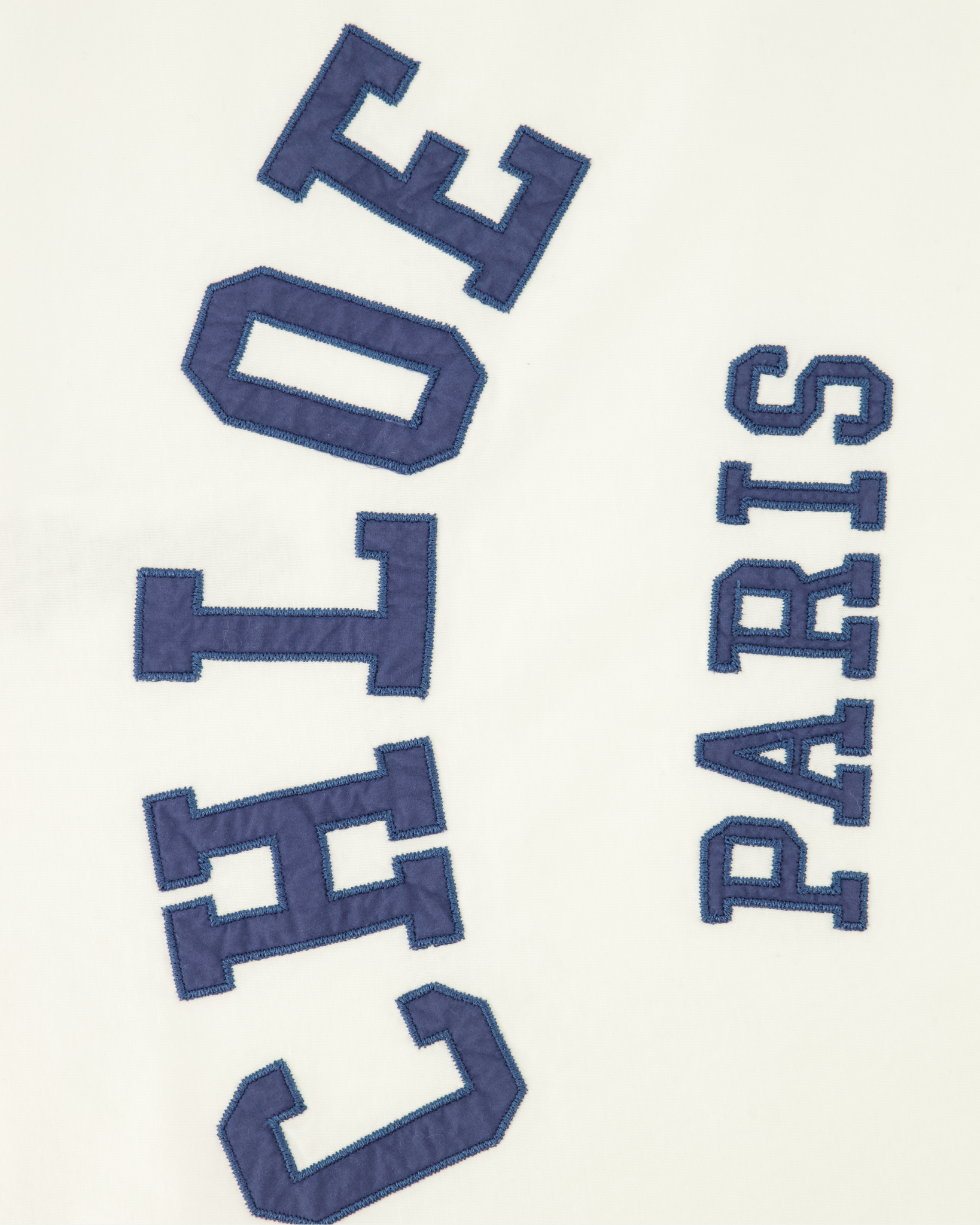 Dit Chloé Kids T-shirt combineert een speelse uitstraling met een comfortabele, luxe afwerking. Het shirt is gemaakt van zacht biologisch katoen en heeft een cropped, oversized pasvorm voor een moderne en relaxte look. Op de borst prijkt een grote Chloé Paris-logo applicatie, die zorgt voor een herkenbare en stijlvolle uitstraling.De ronde hals en het soepele jersey materiaal maken het T-shirt prettig om dagelijks te dragen. Perfect te combineren met andere items uit de collectie, en leuk voor een mini-me styling met de damesvariant.
