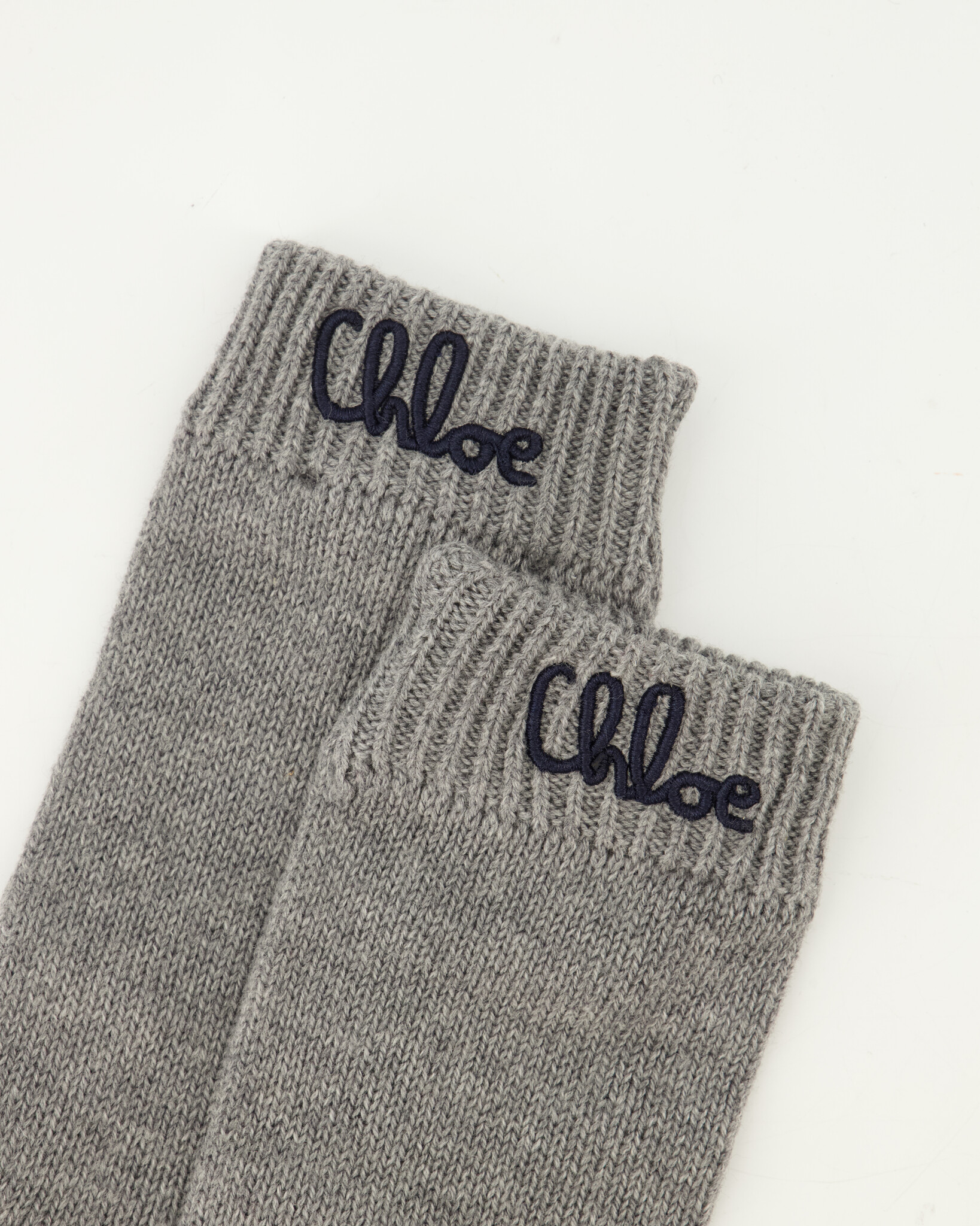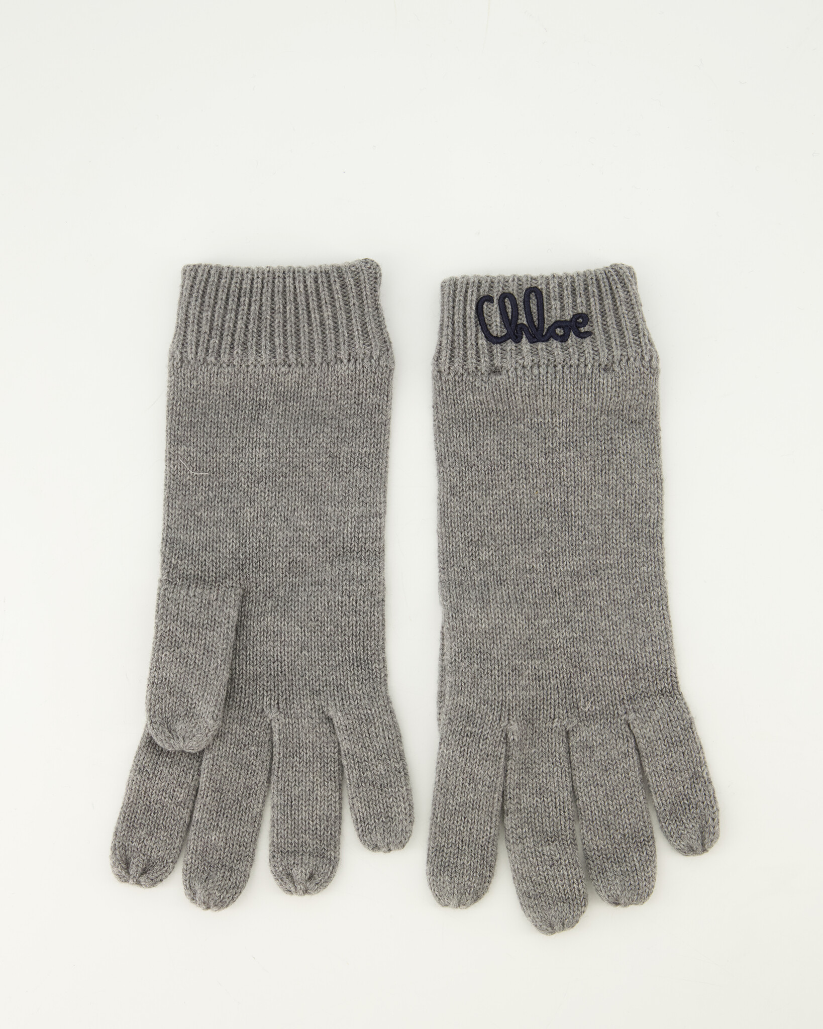 Deze schattige en stijlvolle handschoenen zijn onderdeel van de Chloé Kids-collectie en zijn vervaardigd uit een luxe, zachte blend van biologische katoen en lamwol. Uitgevoerd in een verfijnde grijstint, afgewerkt met een contrasterend geborduurd Chloé-logo – subtiel en modieus in één.