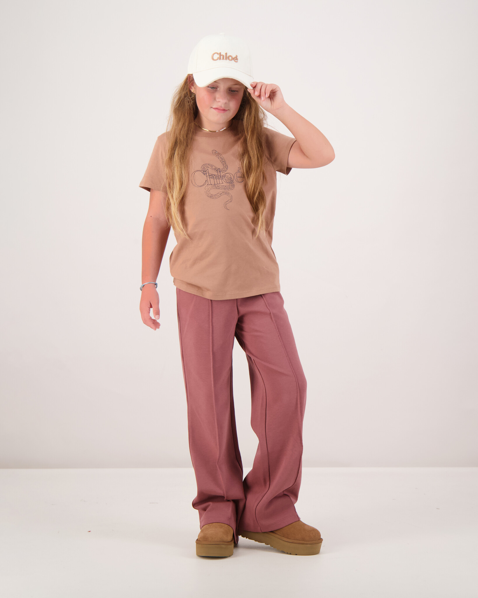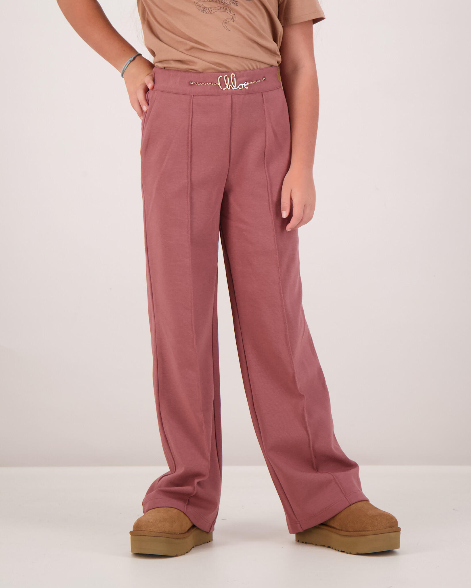 Een verfijnde must-have: deze Chloé meidenbroek combineert comfort en elegantie met een moderne twist. De "Milano"-pasvorm staat garant voor een comfortabele draagervaring dankzij de elastische tailleband, terwijl een subtiel gouden kettingaccent, gegraveerd met het Chloé-logo in handschrift‑stijl, de look omtovert tot iets bijzonders.
