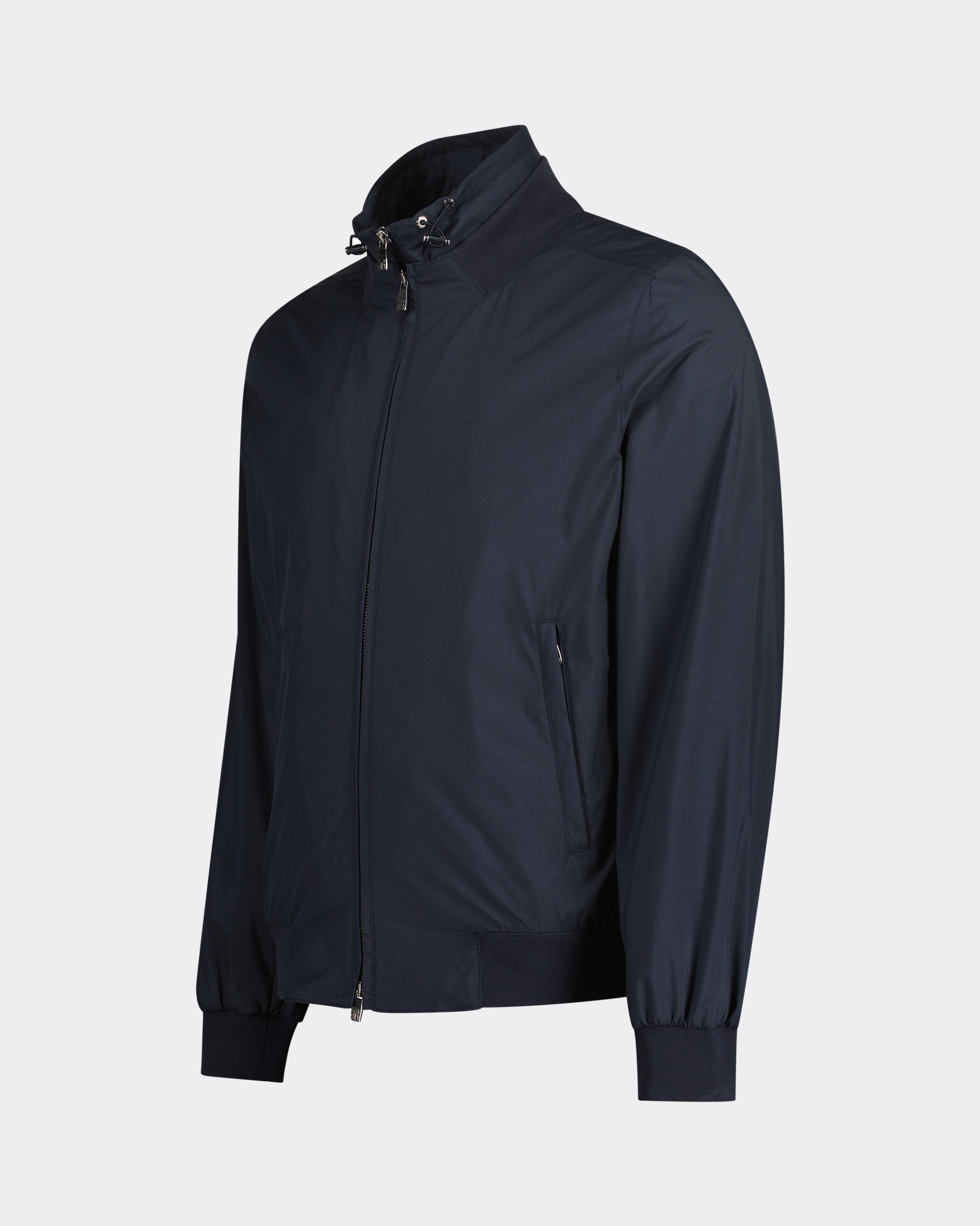 Blauwe ' Outerwear Jacket ' van het merk Corneliani. De jas heeft twee steekzakken die afgesloten worden met een rits, een zak aan de binnenkant die wordt afgesloten met een rits, de jacket wordt afgesloten met een dubbele rits sluiting, waarbij de binnenste sluiting eruit gehaald kan worden.