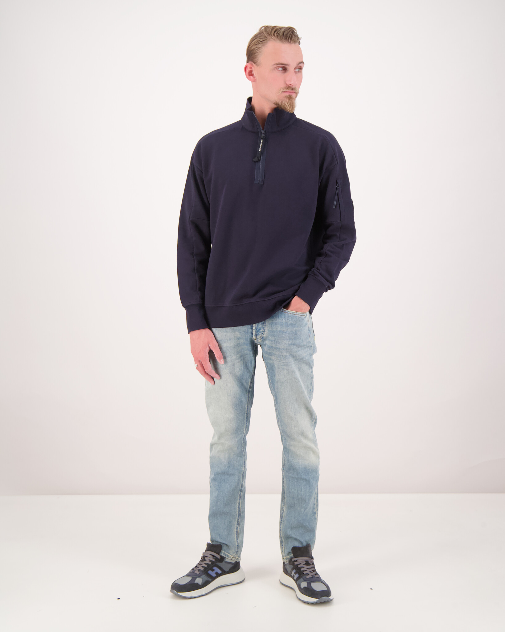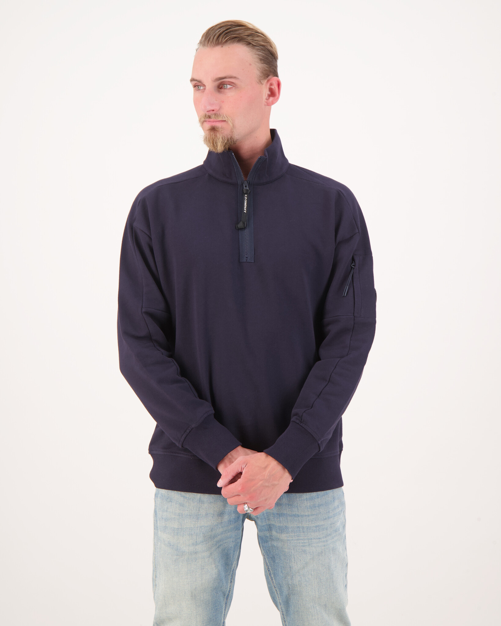 De Diagonal Raised Fleece Half Zip Marine van C.P. Company is een comfortabele en stijlvolle fleece-trui met een halve rits. Gemaakt van zacht katoen met een unieke diagonale structuur, heeft hij een sportieve uitstraling dankzij de raglanmouwen en kraag. De trui is ideaal voor dagelijks gebruik en biedt veel draagcomfort